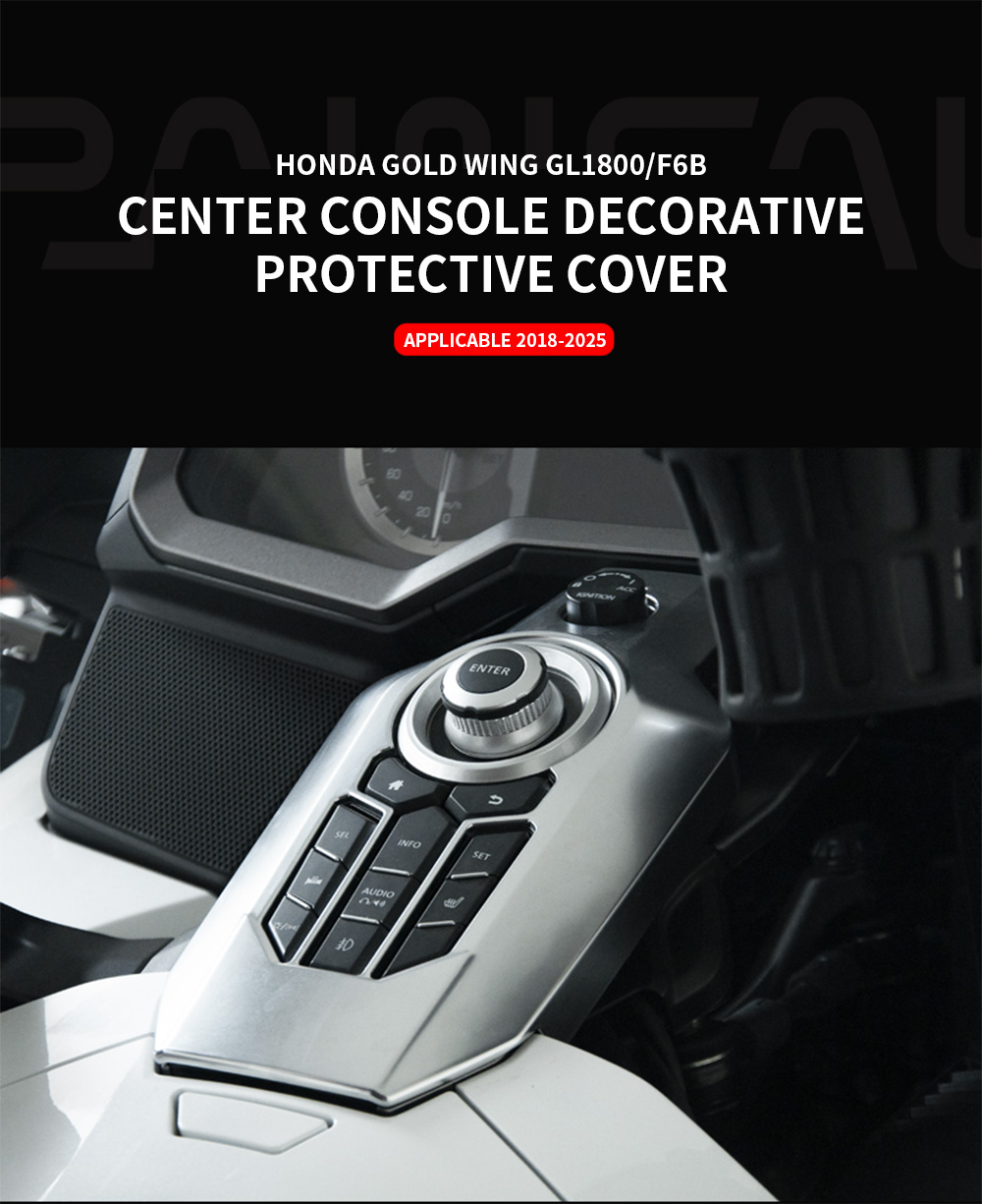 Product Introduction Applicable models: Designed specifically for the 2018-2025 Honda Goldwing GL1800 F6B, perfectly matching the original center console contour. Functional positioning: Decorative upgrade component, used to replace original plastic parts or old electroplated covers, enhancing the overall luxury and visual impact of the vehicle.
