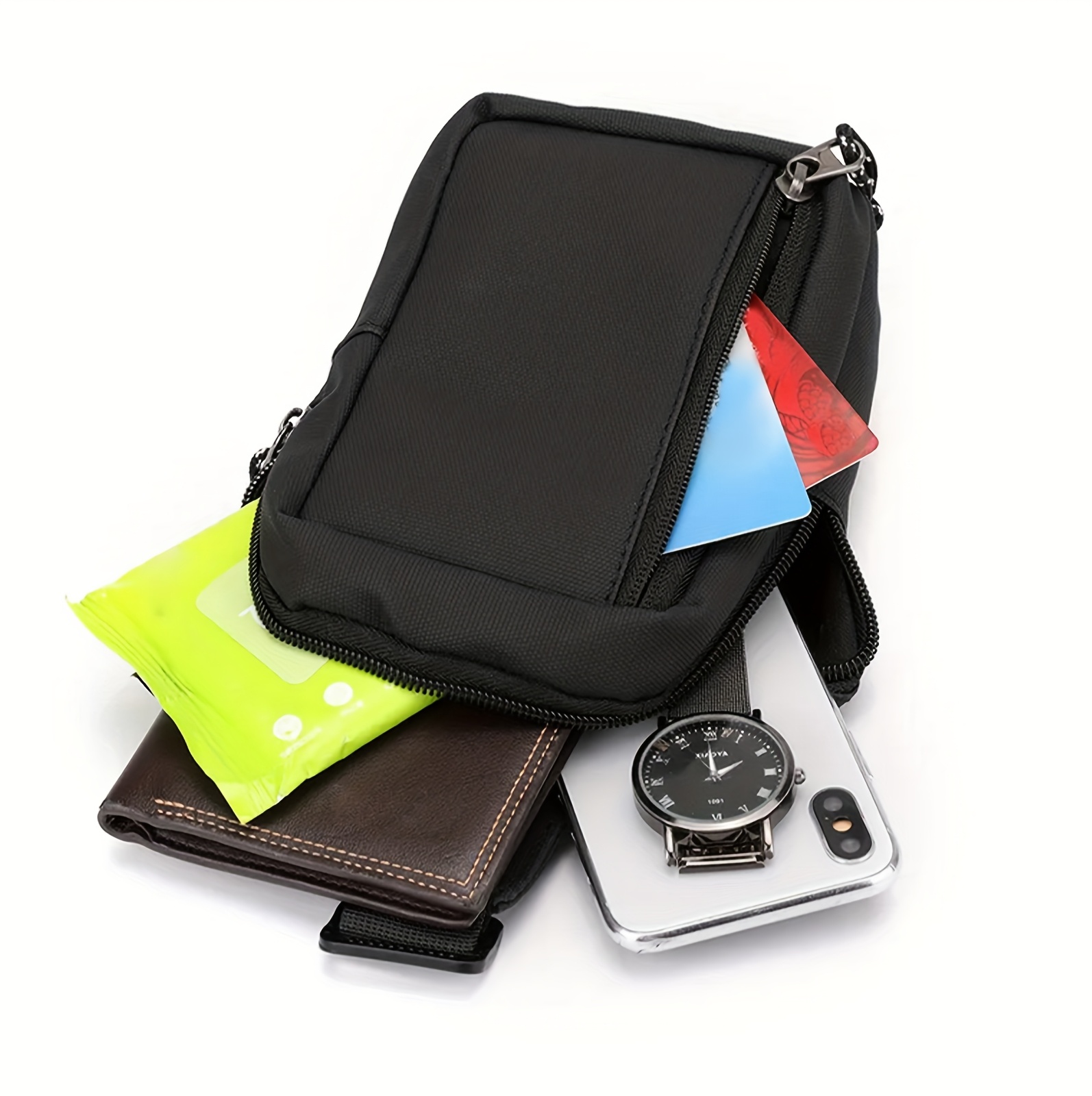 1 Roomy Main Pocket: The bag has a roomy main pocket that can nicely hold your cellphone, wallet, glasses, etc.