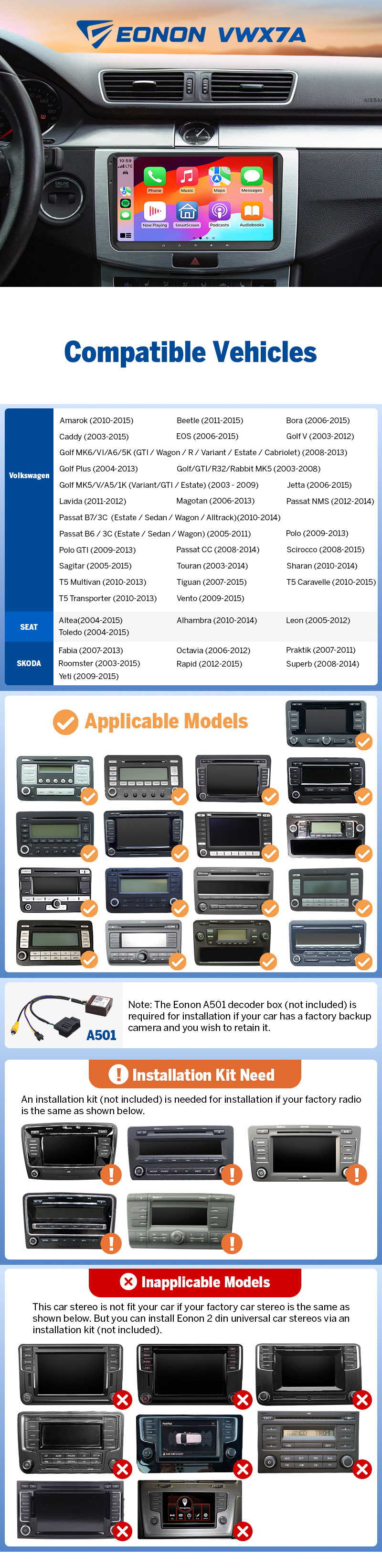 Inapplicable Volkswagen OEM radio: RCD550 | RNS810 | RNS850