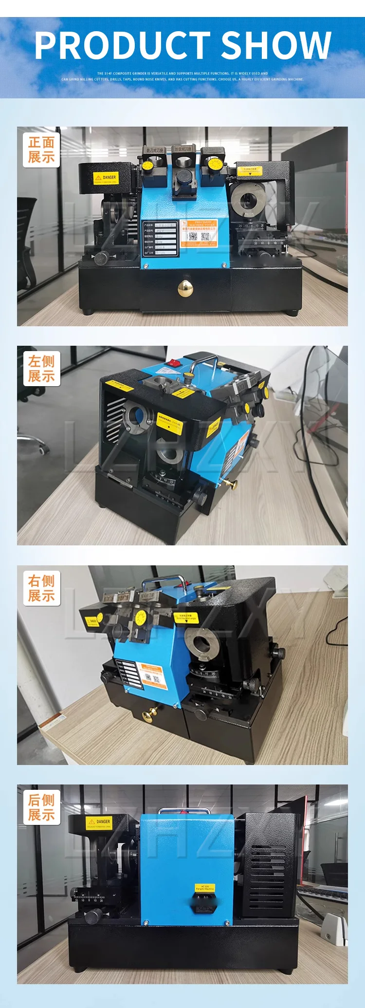 Grinding range: Φ3-14 (milling cutter/drill/round nose cutter)/M5-M20 (tap)