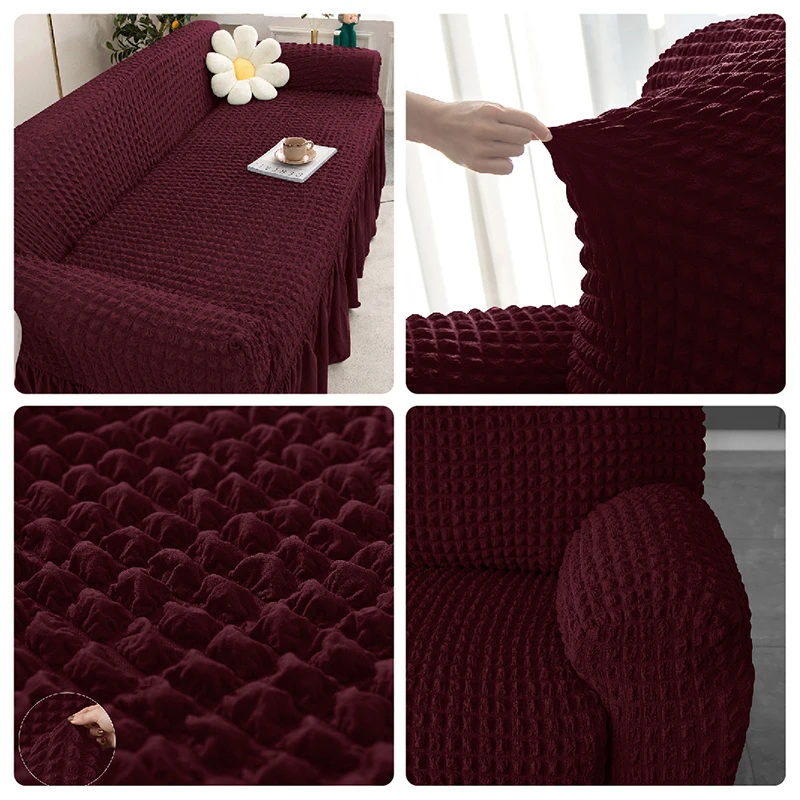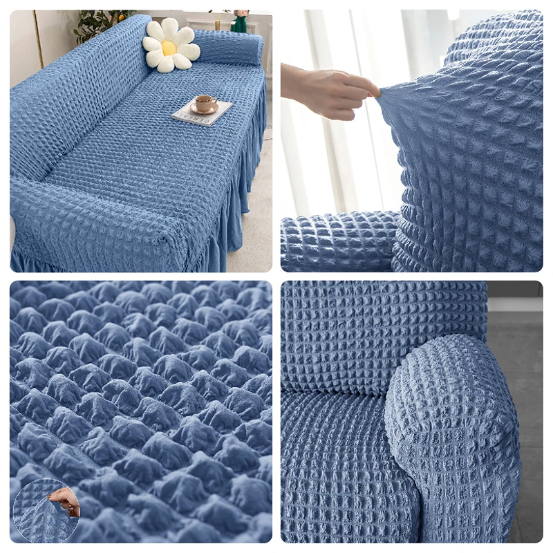 Our Elasticity cover for couch sofas has excellent flexibility.It is easy to fit various kinds of couches (Pls measure the size in advance according to the dimension drawings on the picture.) Anti-slip foam roller prevents the couch covers for sofa slipping off.Elastic cord can easily adjust the position of the sofa slipcovers skirt.