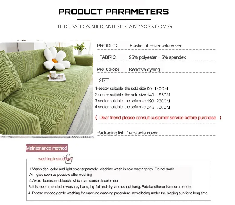 Special Reminder:Due to the thickness of the fabric, its elasticity is limited to a certain extent. Therefore, if your sofa is overweight compared to a regular sofa, please make a judgment based on the specific situation and purchase a larger size than the measured size if necessary.