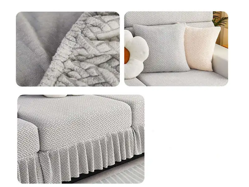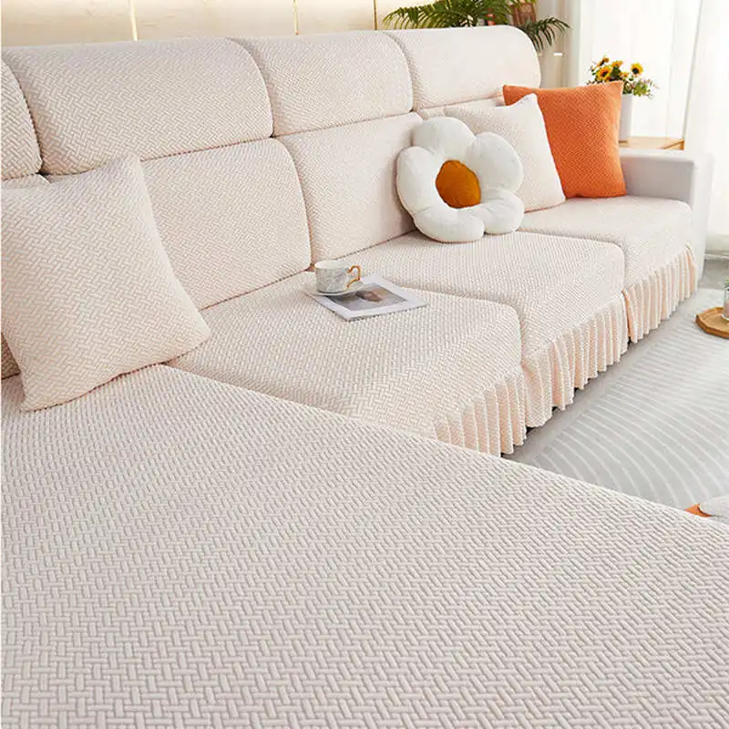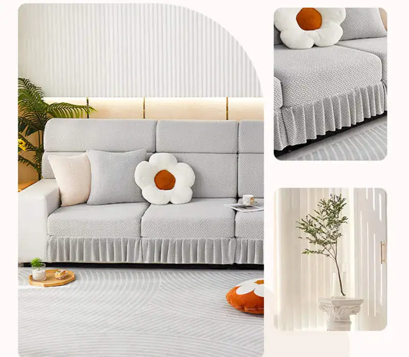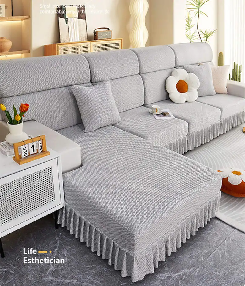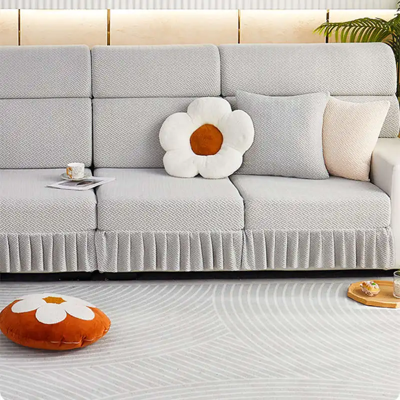 Item Name: Elastic Jacquard Fleece Sofa Mattress with Skirt 1/2/3/4 Seater Corner Couch Cushion Slipcovers Modular Sofa Cover Features: Material: Made of jacquard fleece material. Soft, breathable, and durable, meanwhile remains the high stretch-ability. The jacquard fleece fabric is crease resistant, so the cushion cover will stay in shape no matter how you sit or wash it. Cushion coverage: With the elastic band all around the edge, the cushion cover will always in place. There is no need to adjust after somebody sit on the cushion. Avoid your furniture from daily wear, scratch, and other accidental. Match it all: The cushion cover not only covers the damage of your old furniture but also give your home a new look. more than 10 colors for you to choose to match your home decoration. How To Choose?