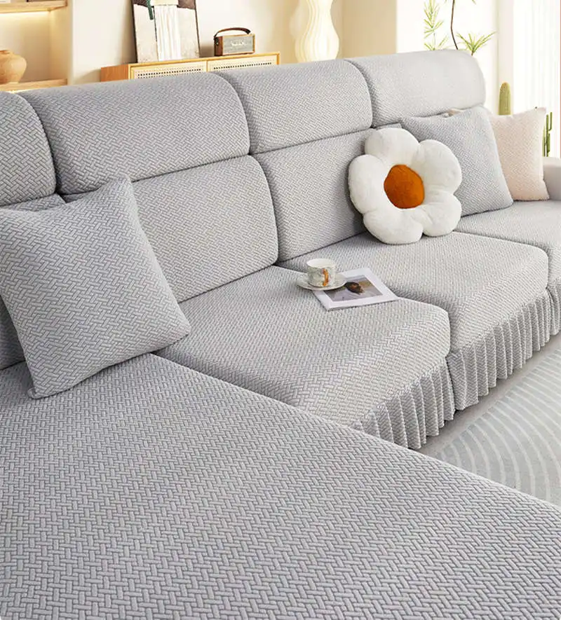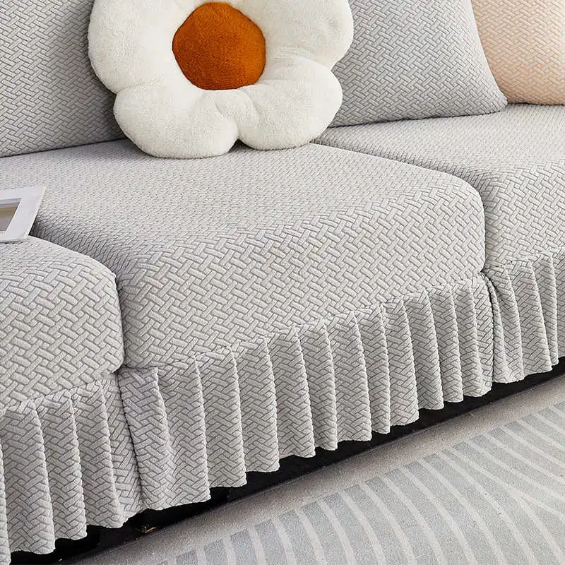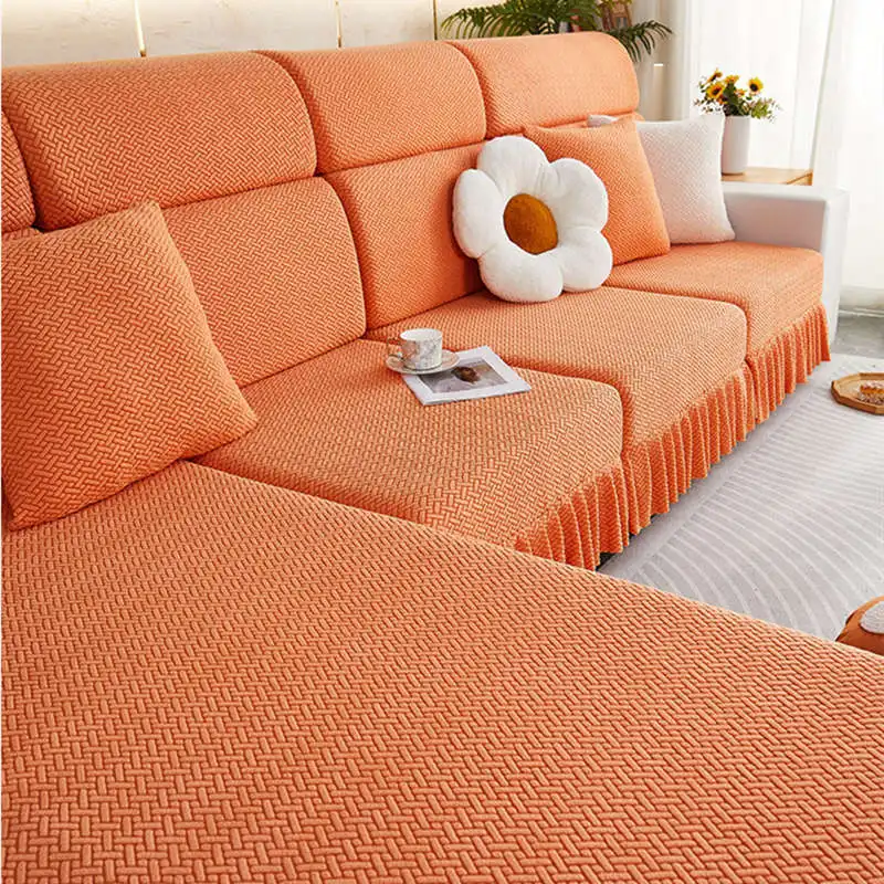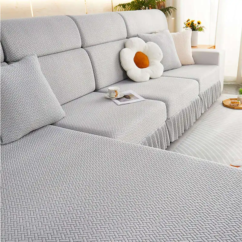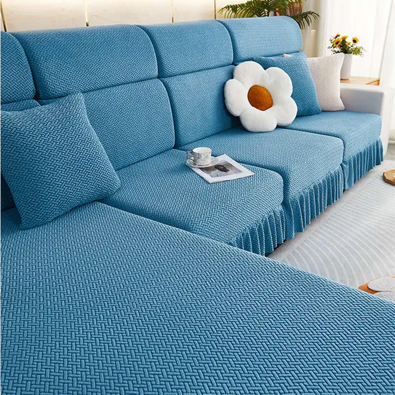 Item Name: Elastic Jacquard Fleece Sofa Mattress with Skirt 1/2/3/4 Seater Corner Couch Cushion Slipcovers Modular Sofa Cover Features: Material: Made of jacquard fleece material. Soft, breathable, and durable, meanwhile remains the high stretch-ability. The jacquard fleece fabric is crease resistant, so the cushion cover will stay in shape no matter how you sit or wash it. Cushion coverage: With the elastic band all around the edge, the cushion cover will always in place. There is no need to adjust after somebody sit on the cushion. Avoid your furniture from daily wear, scratch, and other accidental. Match it all: The cushion cover not only covers the damage of your old furniture but also give your home a new look. more than 10 colors for you to choose to match your home decoration. How To Choose?