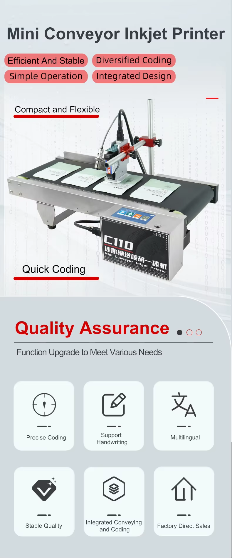 A:We are a specialized manufacturer of inkjet printer and other related equipment in China, all products are manufactured by ourselves, and we have our own R & D team to serve you.