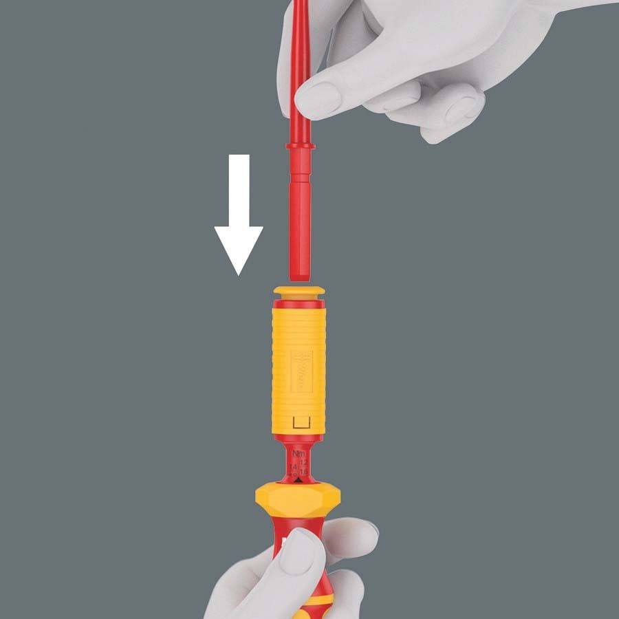 Manche VDE dynamométrique pour travailler en toute sécurité jusqu'à 1000 volts. À Couple réglable sur une plage comprise entre 1,2 et 3,0 Nm. Déclic audible et tactile lorsque le couple préréglé est atteint. Couple de desserrage manuel illimité. Pour les lames interchangeables Kraftform Kompakt VDE : le système de poignée/lames interchangeables permet un changement de lame en un éclair et offre une multitude d'utilisations. Ce texte a été traduit par une machine.