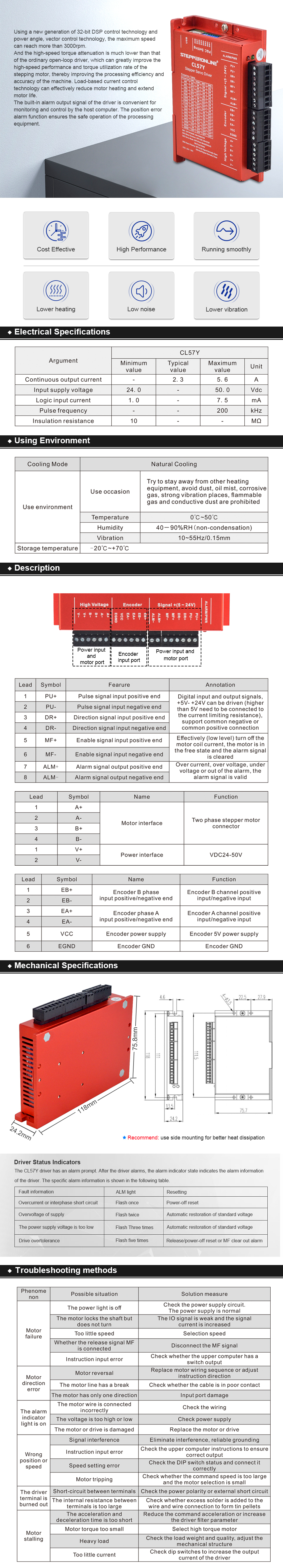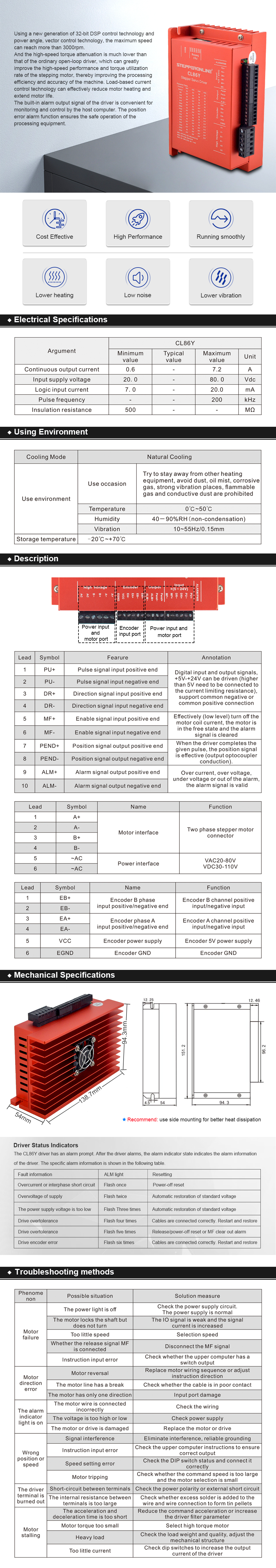 - 1 x Closed Loop Stepper Driver 0-8.5A 20-80VAC/30-110VDC for Nema 34 Stepper Motor
