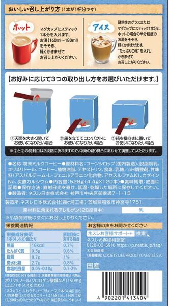 Corn syrup (manufactured in Japan), coffee, skimmed milk powder, erythritol, vegetable fats, dextrin, salt, lactose/pH adjuster, sweetener (aspartame L-phenylalanine compound, acesulfame K), casein sodium, calcium carbonate