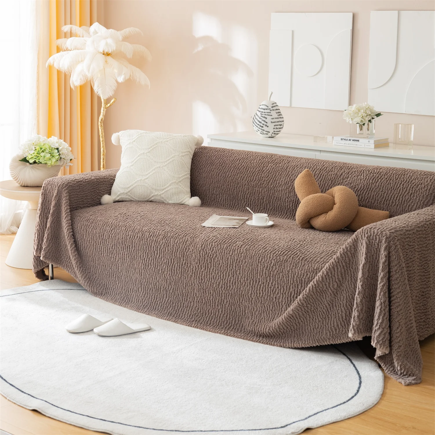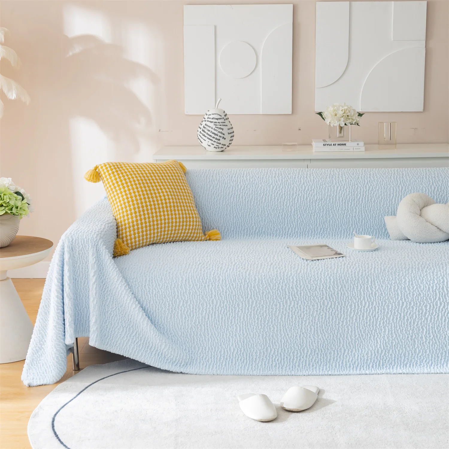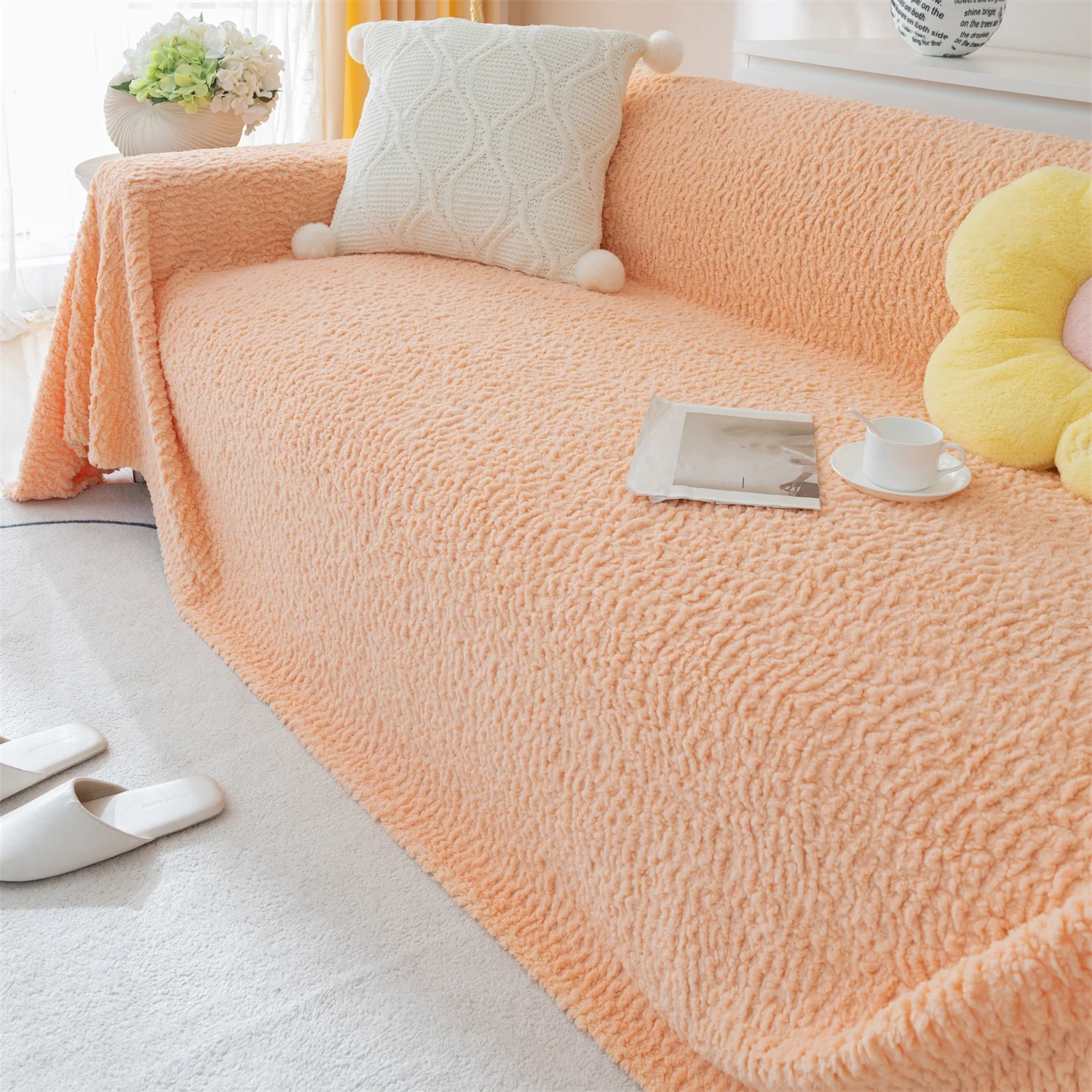 【Occasion】: Simple pure colors can be adapted to any style of home decoration. Whether used as sofa cover, sofa blanket, air conditioner quilt, heat preservation shawl, tablecloth, or used for flooring are very suitable.