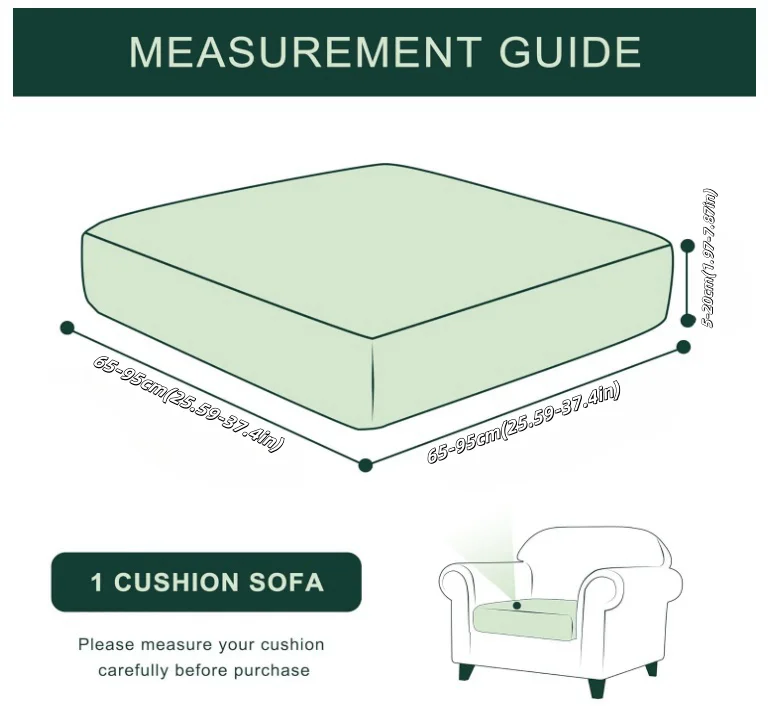 Note :When measuring the size, you need to accurately measure the length/width/height of the sofa cushion, and then choose a suitable sofa cover according to the size table. It is better to choose a larger one than a smaller one.