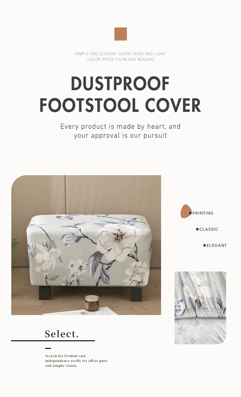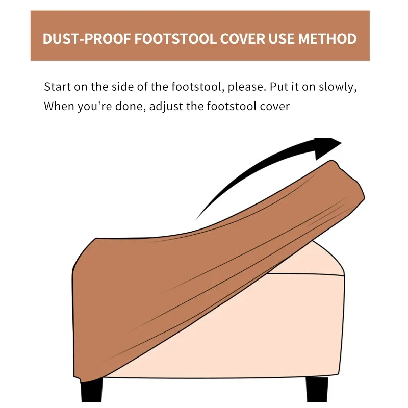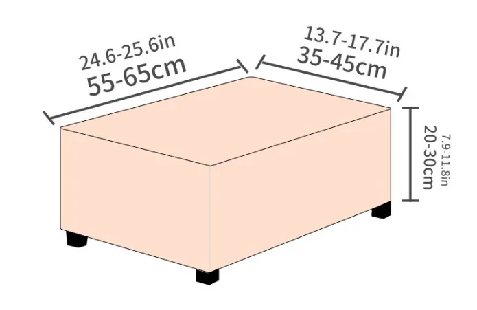 Chair size: Ottoman sofa footstool cover fits most chair covers, our size is length 24.6-25.6in (55-65cm), width 13.7-17.7in (35-45cm) height is 7.9-11.8in (20-30cm), you can measure the length of home Ottoman before buying our products.