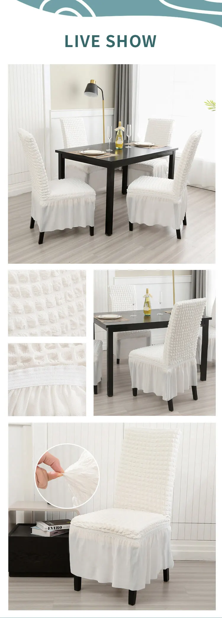 Versatile: Suitable for most dining chairs, reusable, removable. It can be used as a chair for hotels, weddings, banquets, dinners, meetings, celebrations, ceremonies, homes, offices, bars, cafes and restaurants.