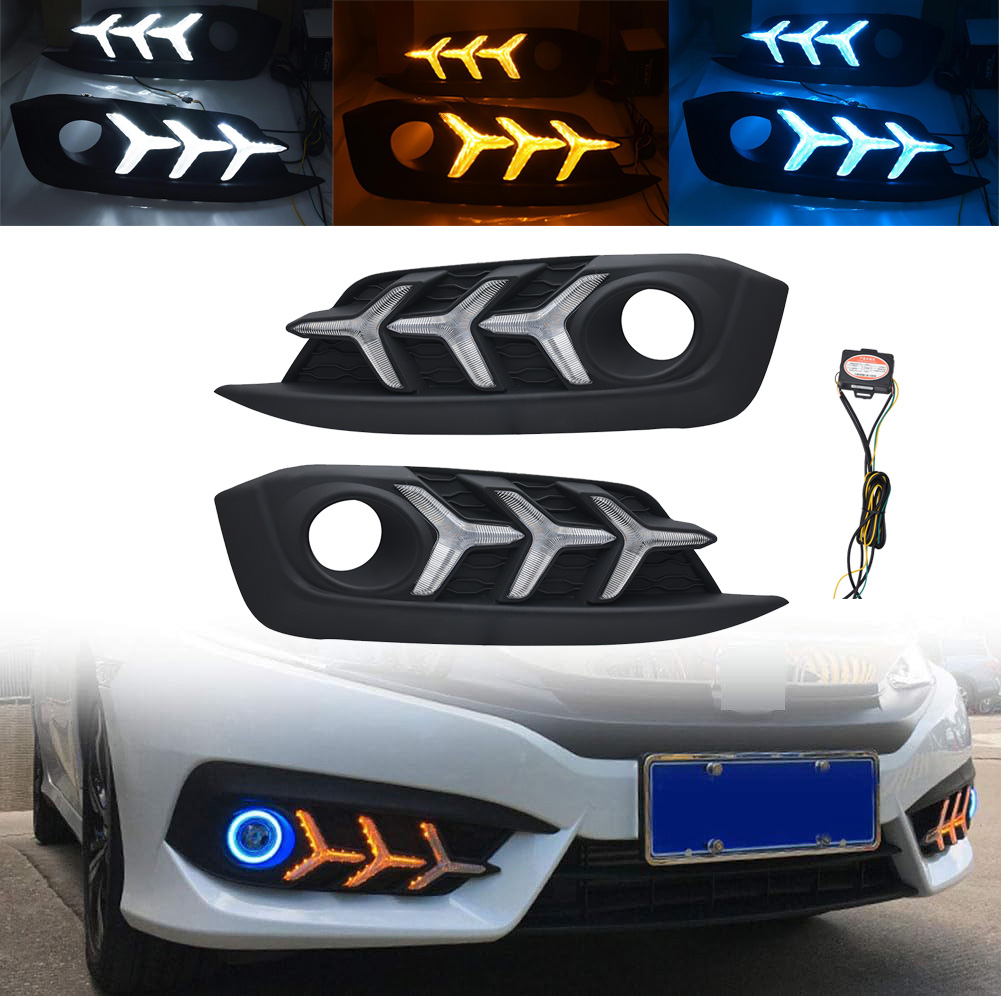 Fit for Honda Civic 2016 2017 2018 LED Daytime Running Light DRL Fog Lamps Turn Signal Light