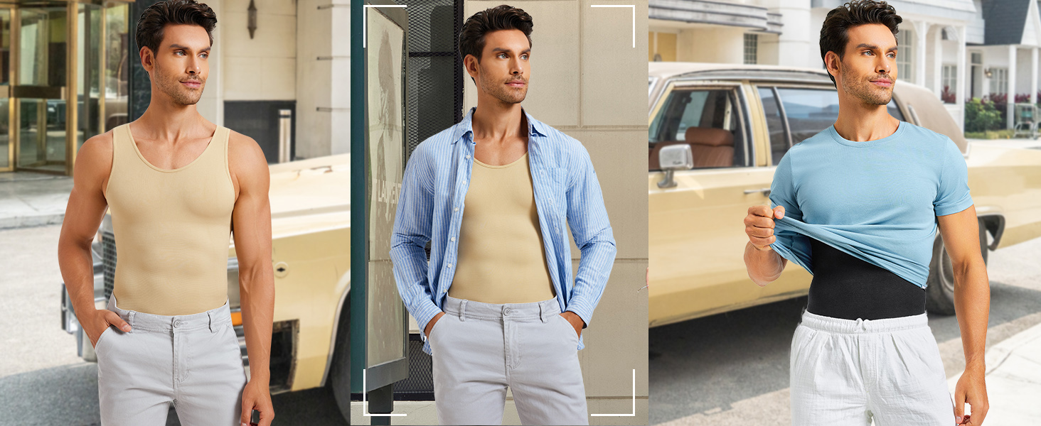 STAY IN PLACE - You'll prefer these mens tank top undershirts as they will stay in place without riding up. This body shaper for men helps you maintain better posture and relieves back pain, making it a great option for people who sit at a desk for long periods of time. The button design at the crotch ensures the convenience of going to the toilet, so you won't have to worry about any hassle when nature calls.
