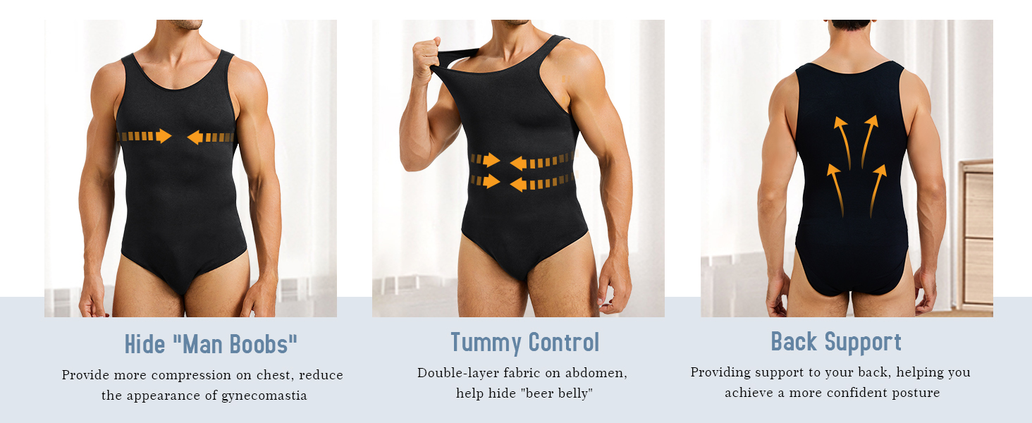 ONE-PIECE SHAPEWEAR: Our men full body shapewear provides a compression-grade fit from chest to buttocks, comfortably hugging your body, effectively smoothing out fat rolls and trimming the waistline, providing an overall smooth feel. This surprisingly comfortable fajas para hombres combines elements of a wrestling vest and a classic corset.