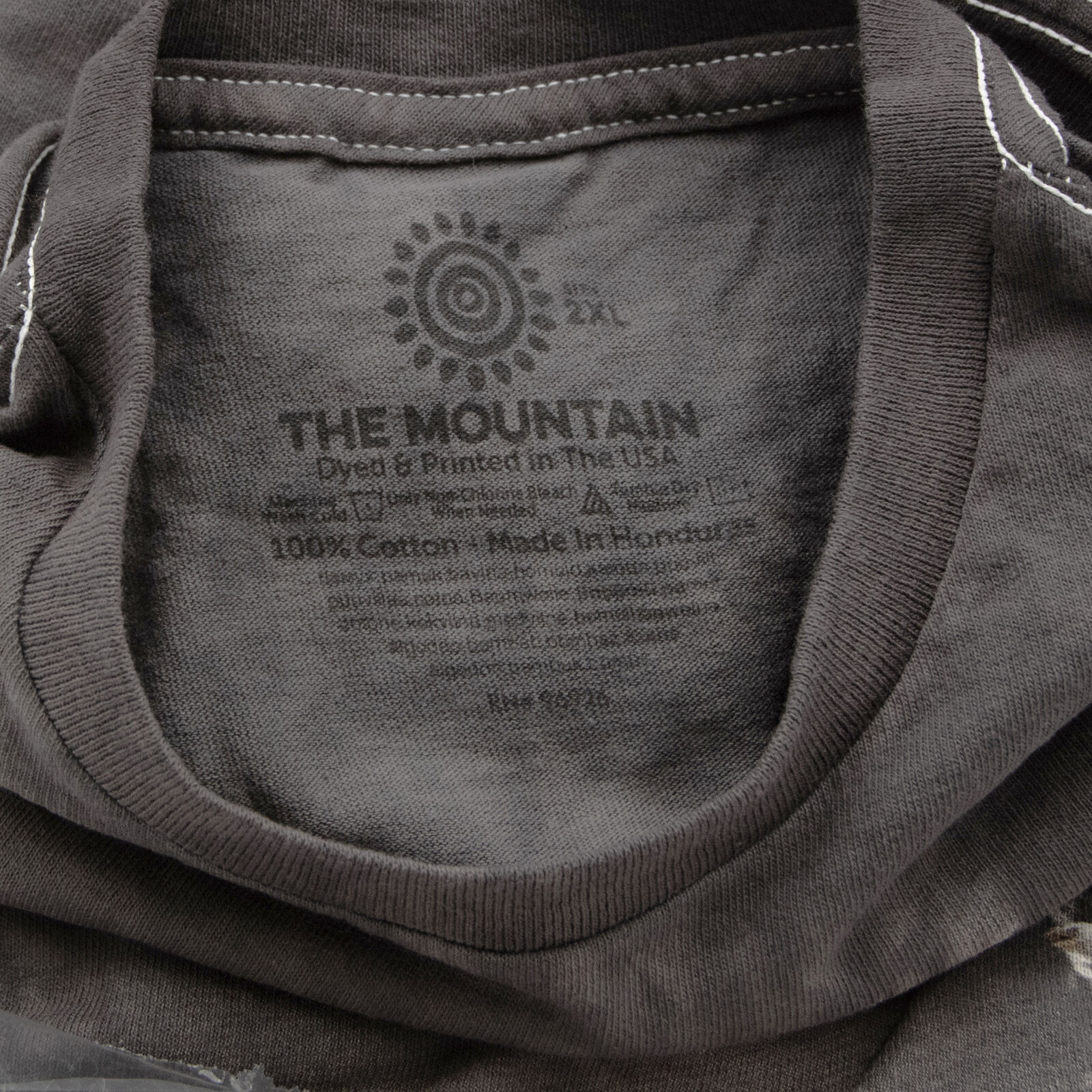 Display your patriotic pride in this colorful Americana Wolves graphic print t-shirt by The Mountain. Perfect for the 4th of July holiday and casual everyday wear, this festive men's tee features a graphic print of two soaring eagles and three wolves against an American flag backdrop with a unique grey tie-dyed color pattern. Made of 100% heavy weight cotton for durability, this regular fit men's t-shirt with crew neck and short sleeves is machine washable. Tagged a men's shirt size xx-large (2XL). Made in Honduras. Dyed and printed in the USA. Approximate Measurements: 26" Chest, 28" Overall Length, 8" Sleeve Length.