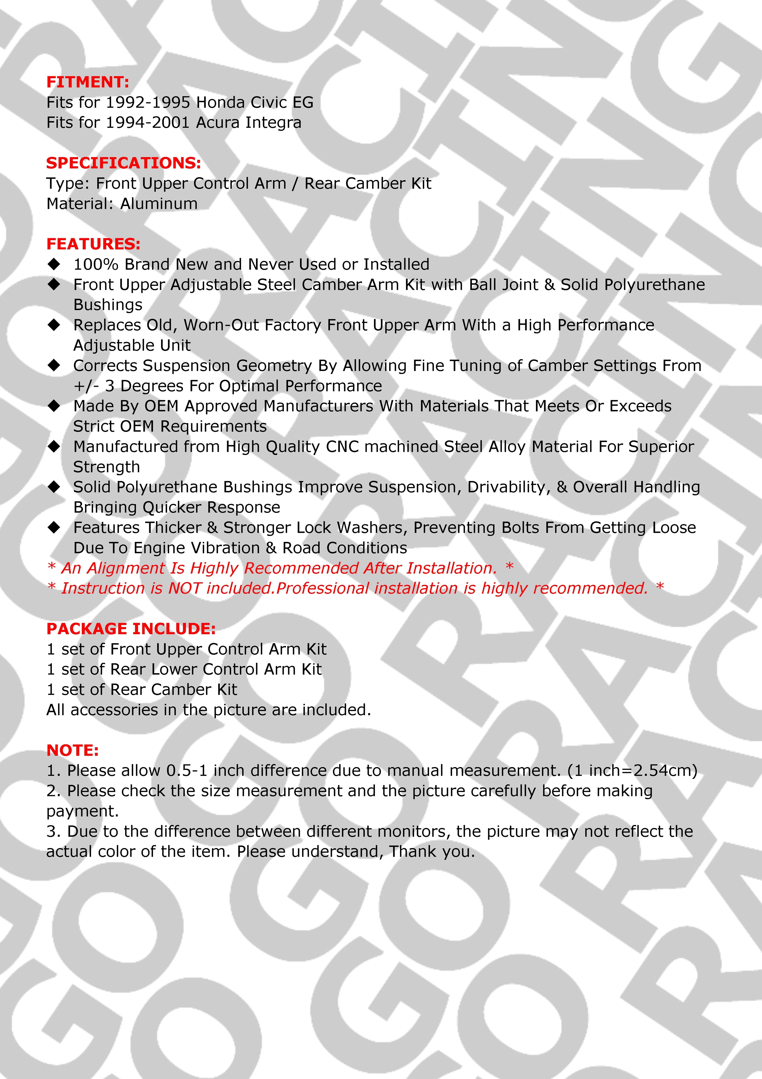 6Pcs Front Rear Upper Control Arms + Rear Cambers Kit For Honda Civic 92-95 EG
