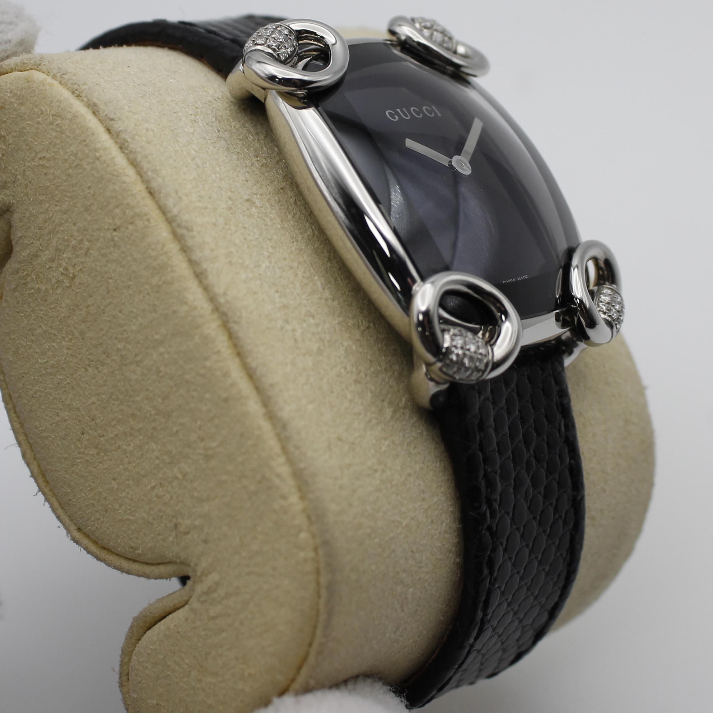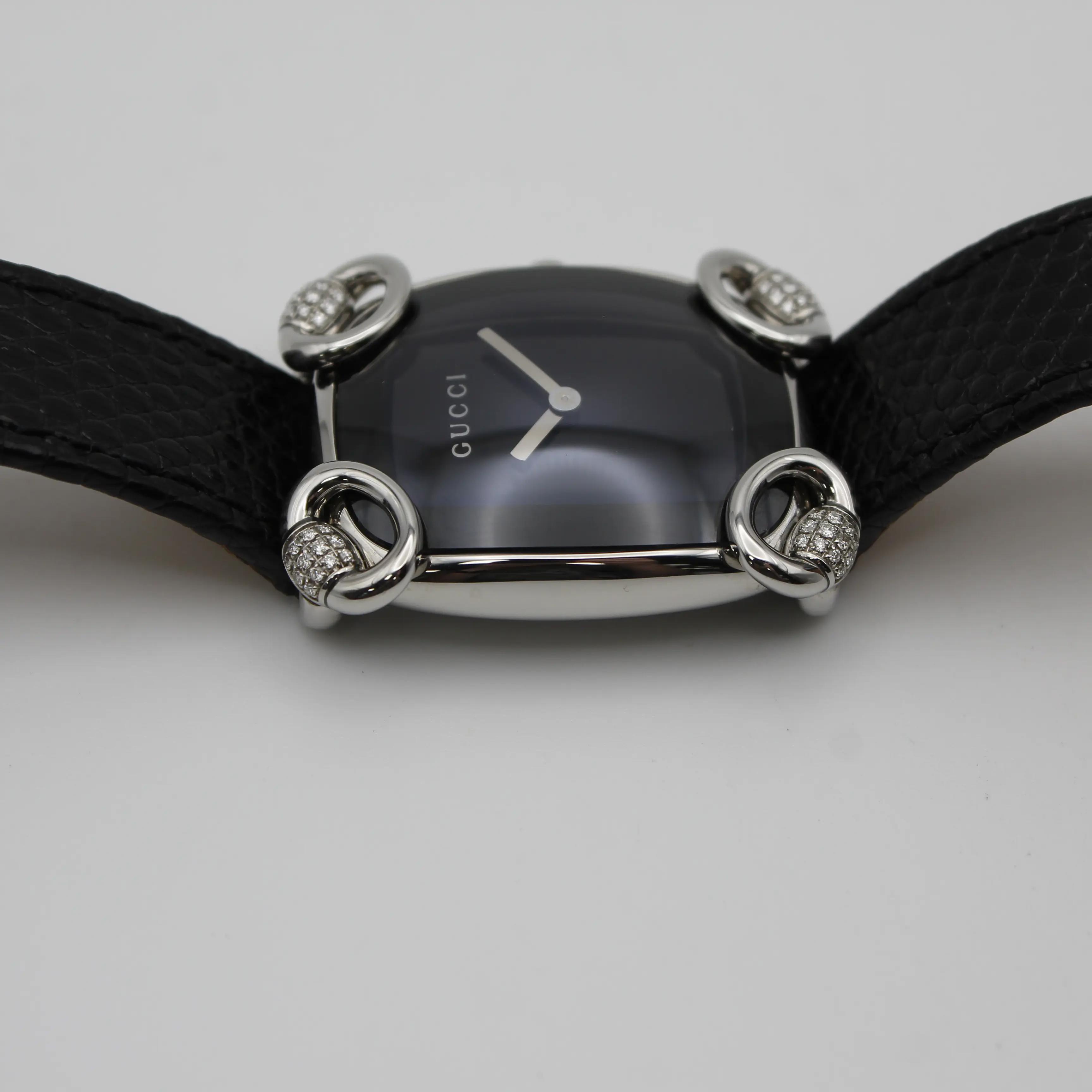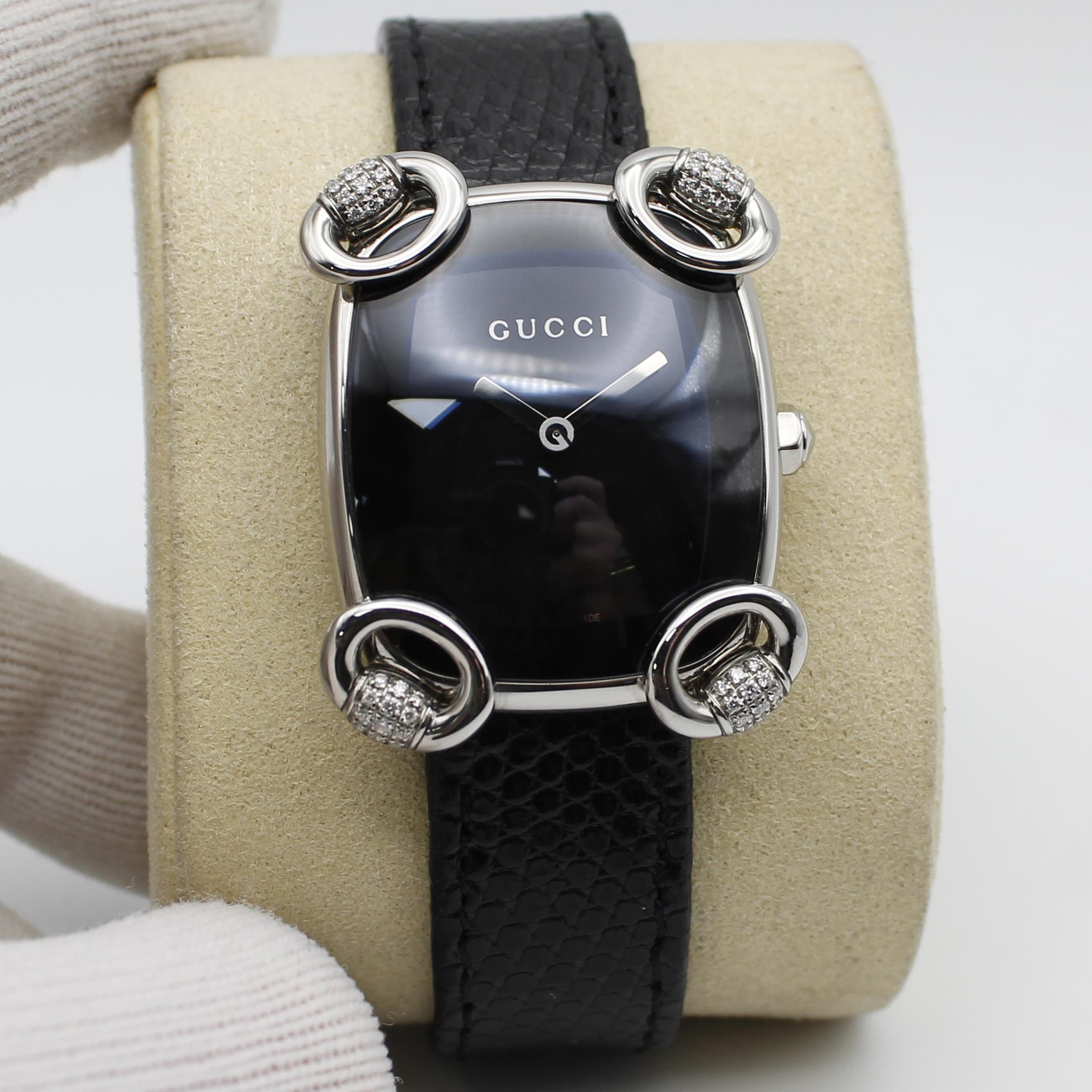 Gucci 117 Horsebit Black Dial Diamonds Steel Quartz Ladies Watch YA117505