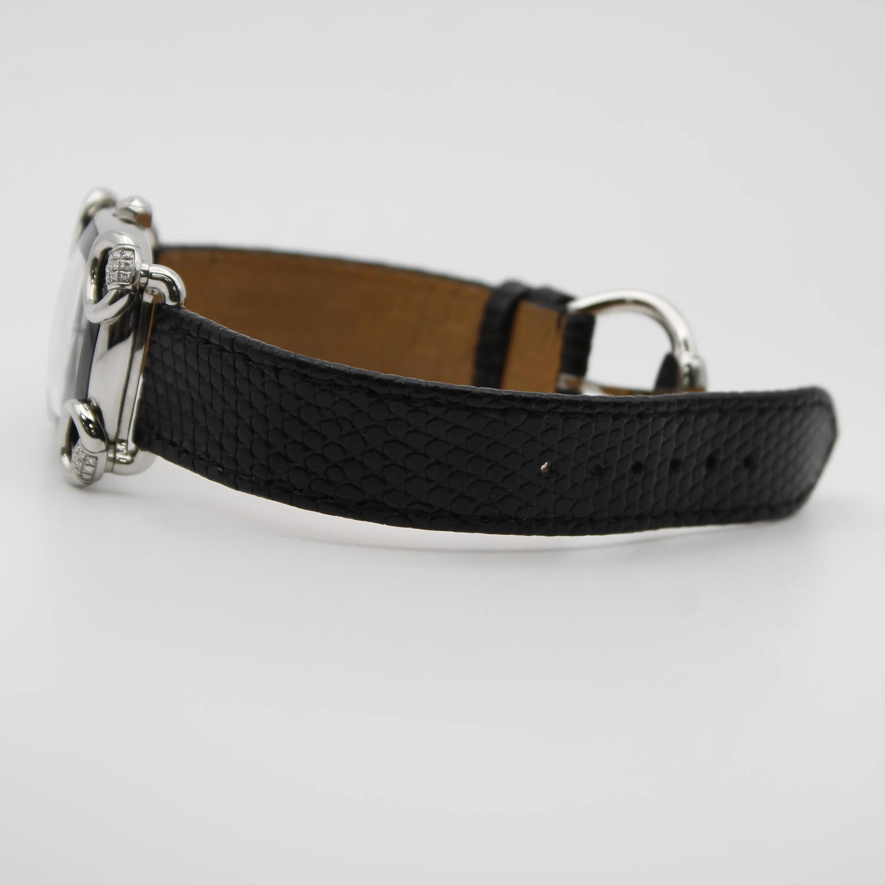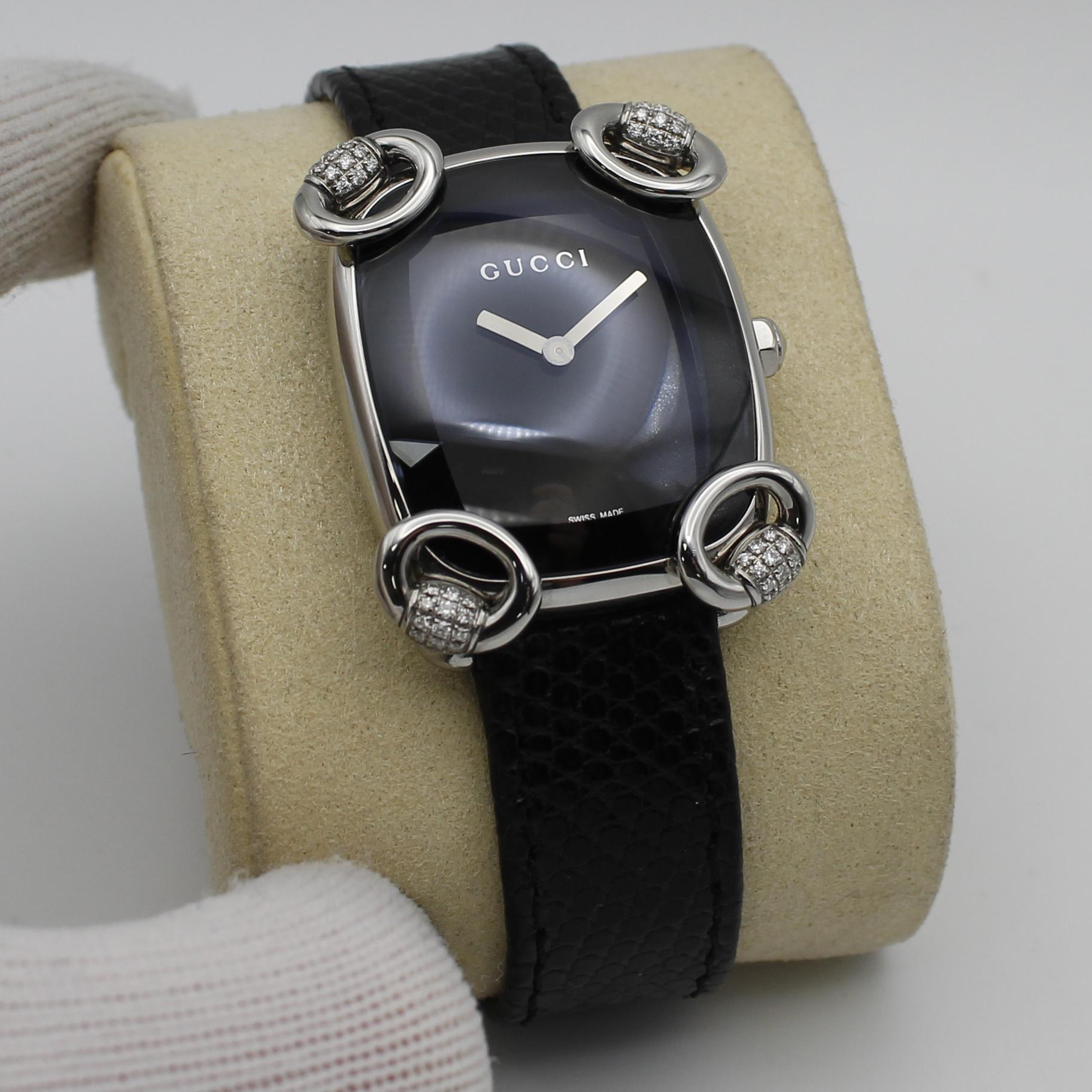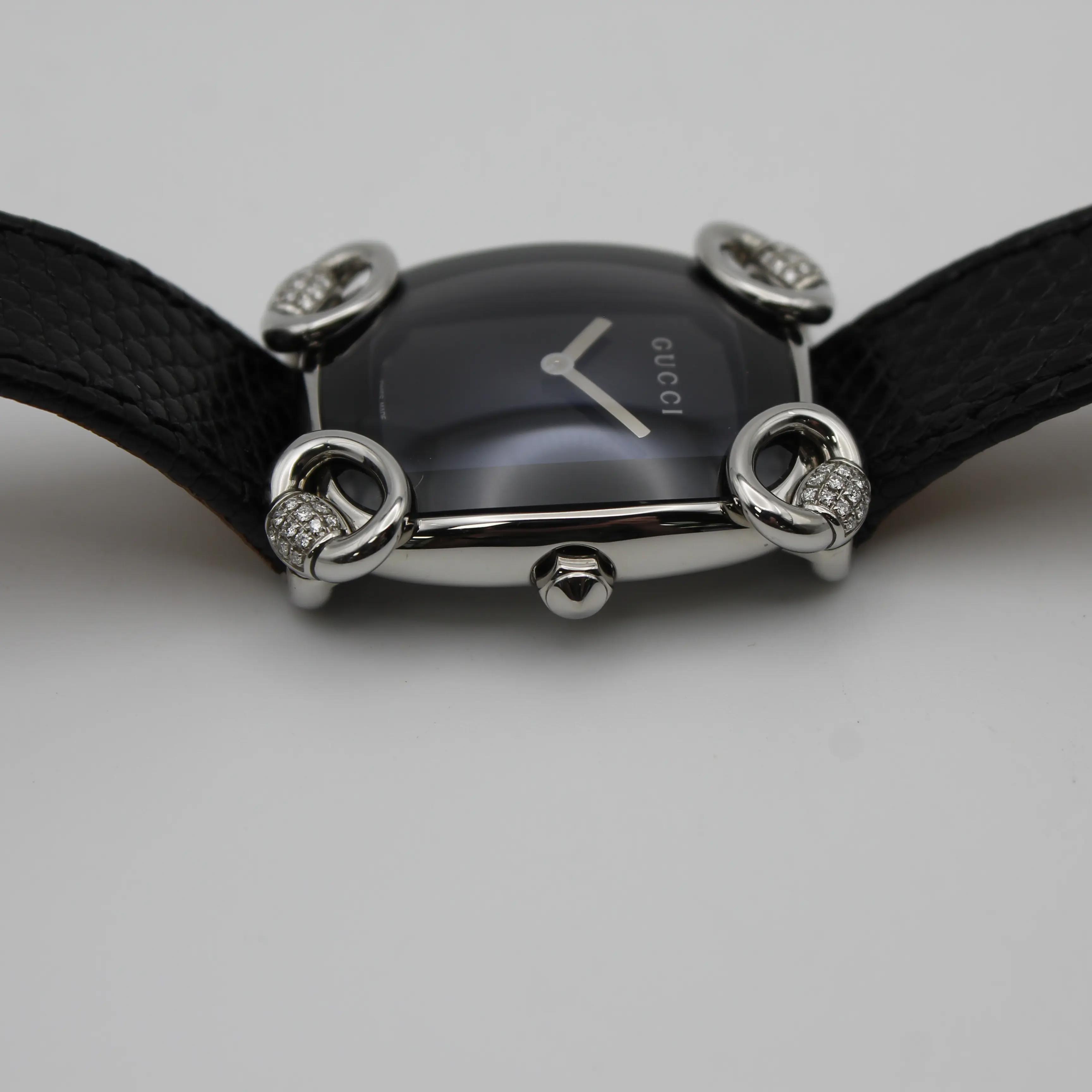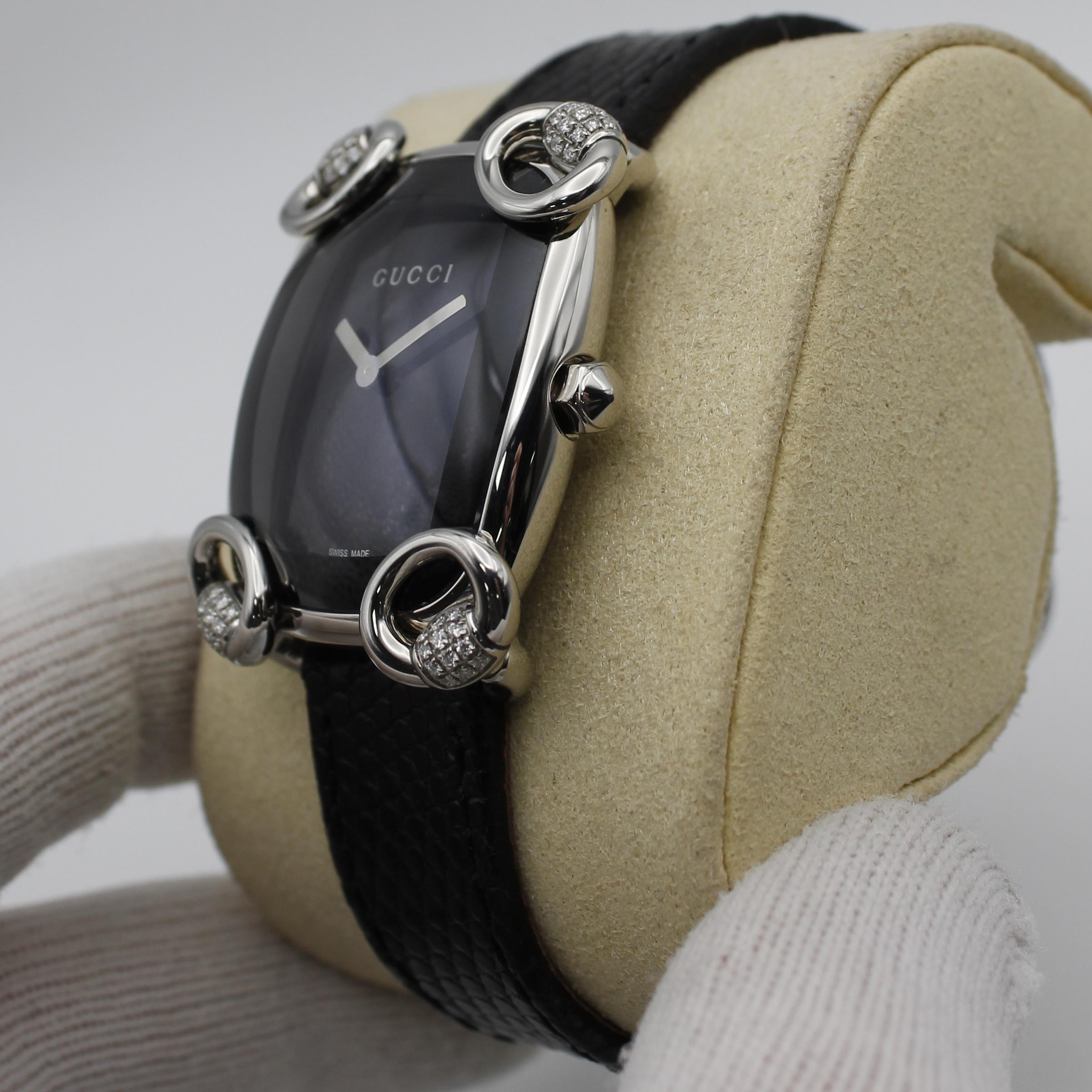 Gucci 117 Horsebit Black Dial Diamonds Steel Quartz Ladies Watch YA117505