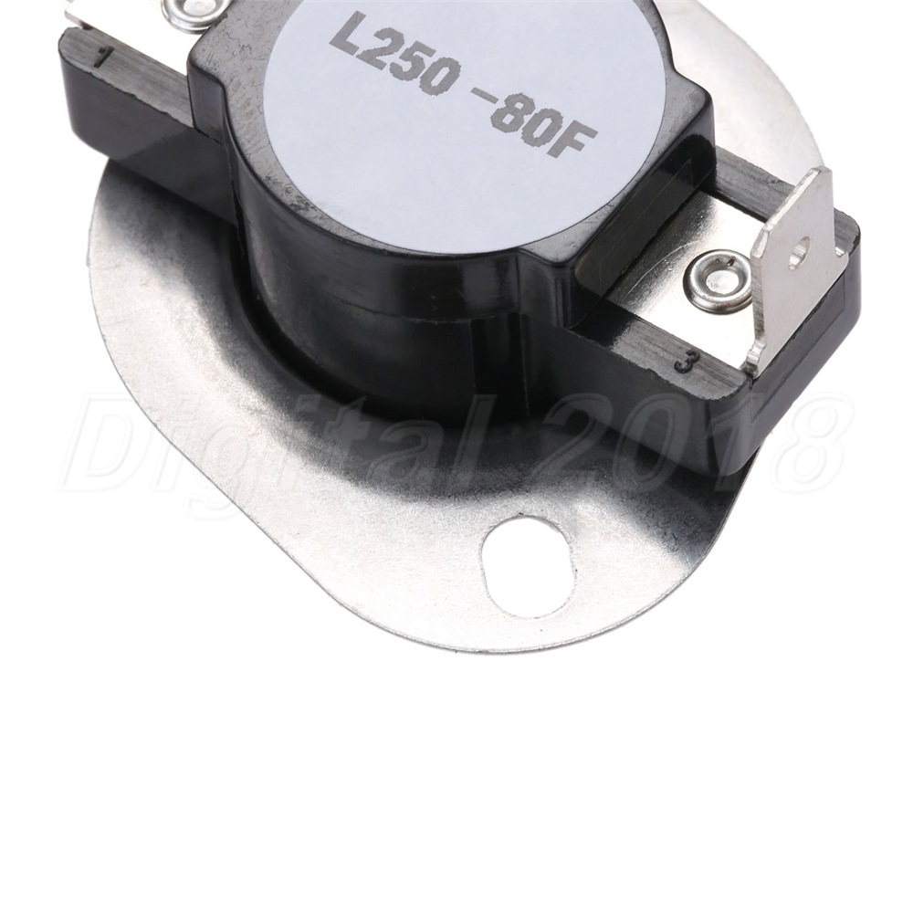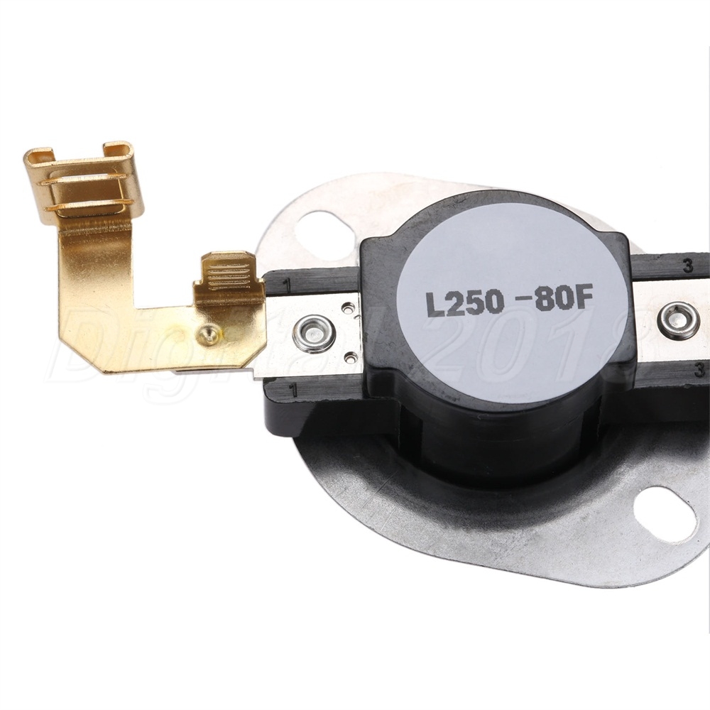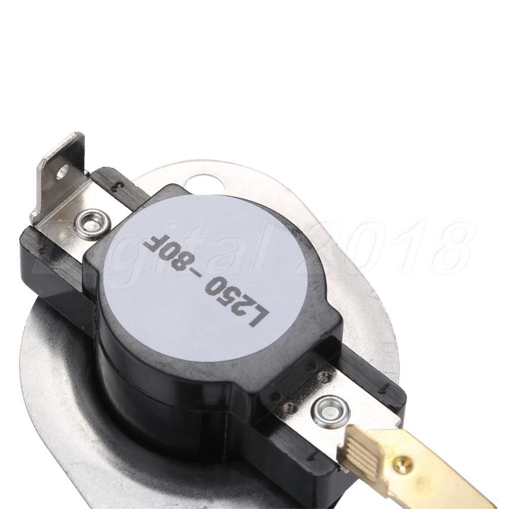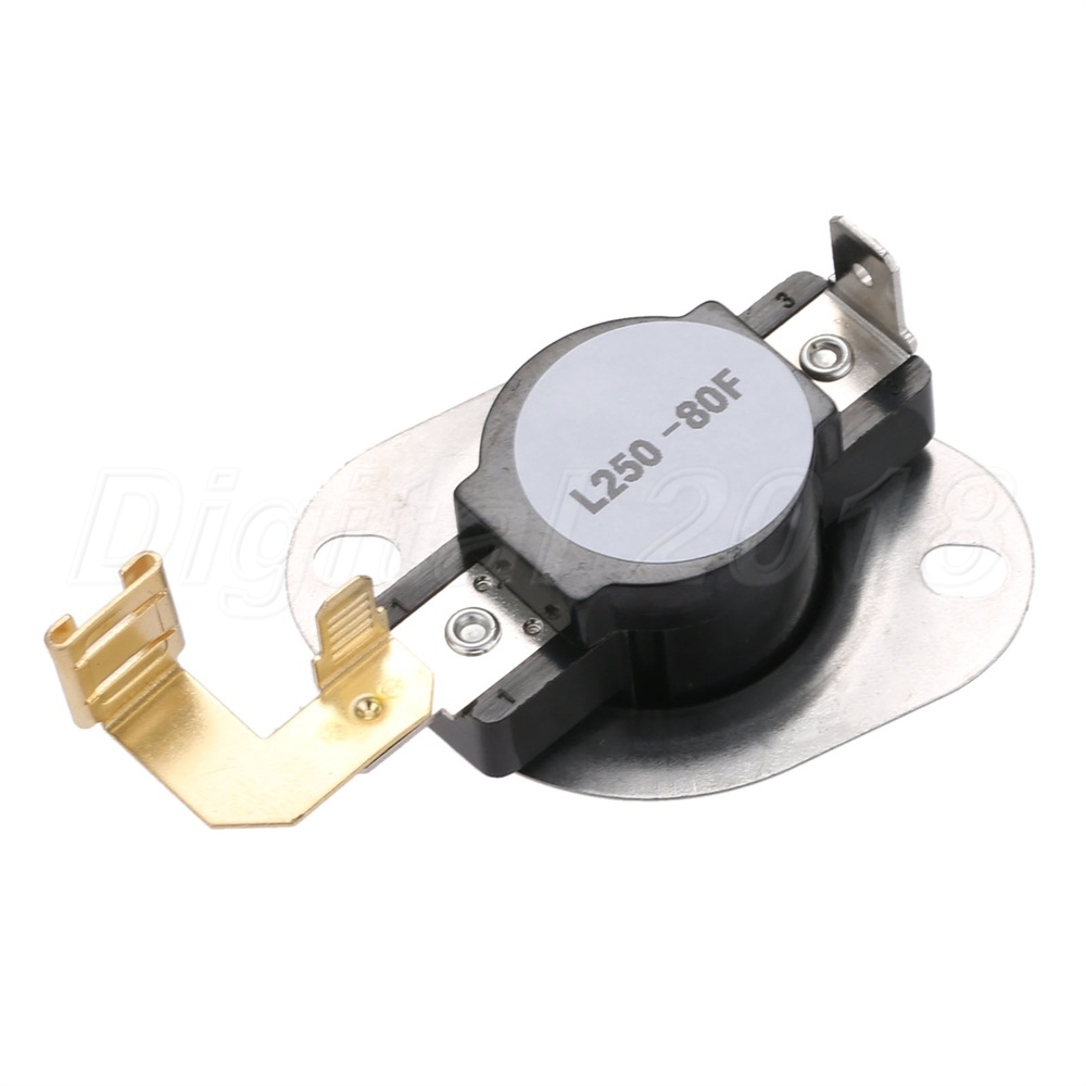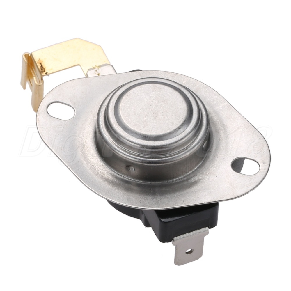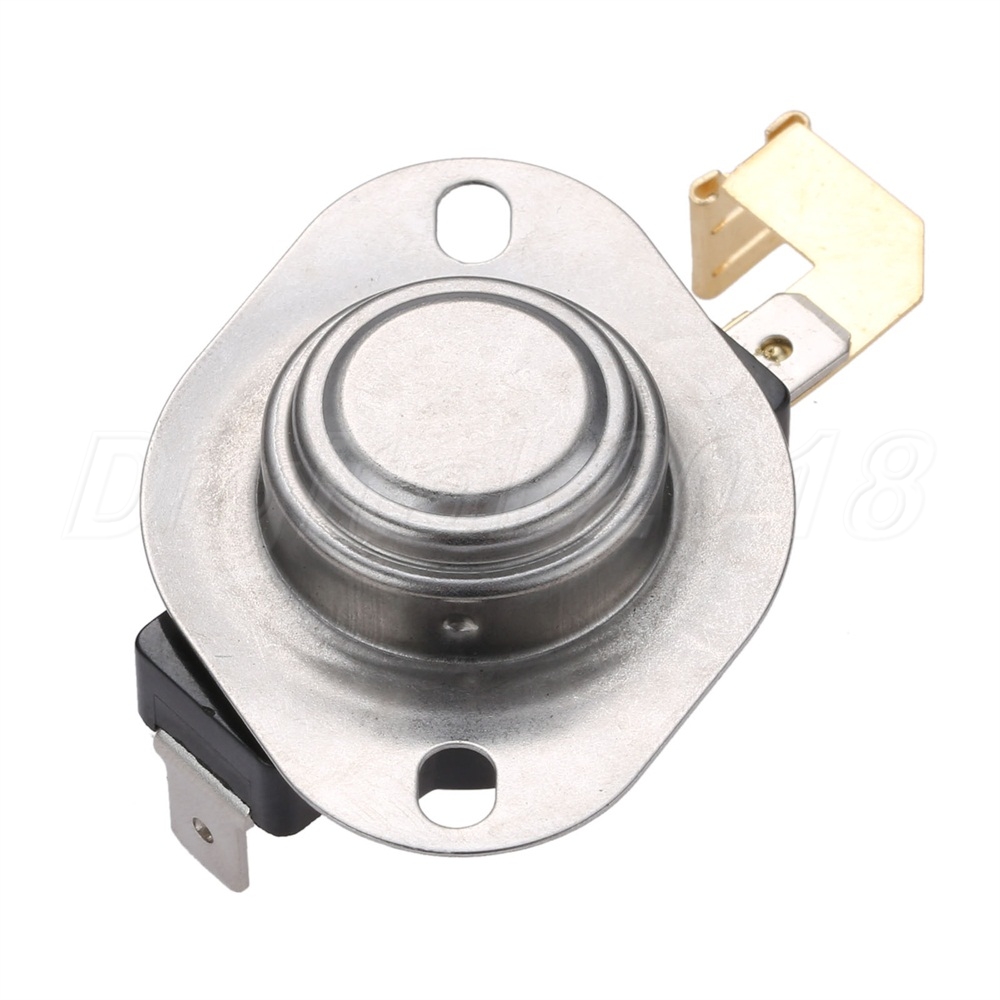 The 3977767 Dryer Thermostat Replacement is a hi-limit thermostat with Terminal Extension Arm. It acts as safety mechanism that keeps the dryer from overheating. Once the dryer temperature reaches 221 degrees Fahrenheit, this piece will shut down power to the heating element until it drops by 80 degrees Fahrenheit.