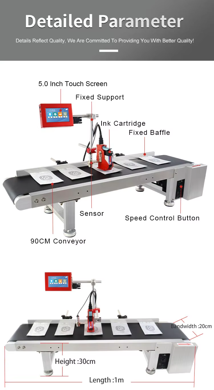 A:The machine can print on paper boxes, plastic, metal, glass, wood, cloth and other materials; Machines are available in height 1.27 cm, 2.54 cm, 5 cm, 10 cm or larger sizes
