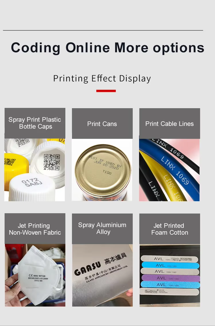 A:You can print date, text, logo, variable data, batch number, QR code, serial number and other content. Red, yellow, blue, green, black, white and other colors are available.
