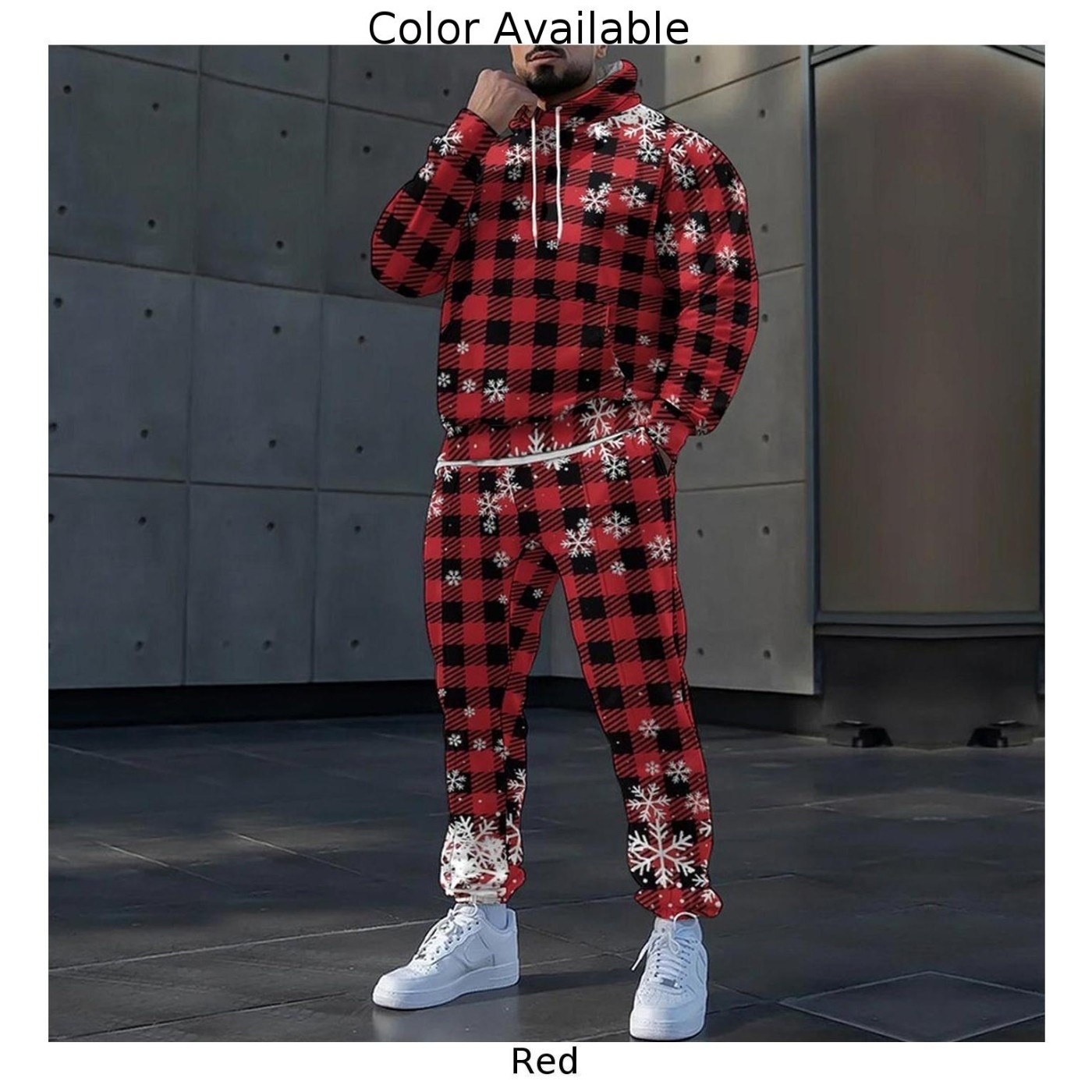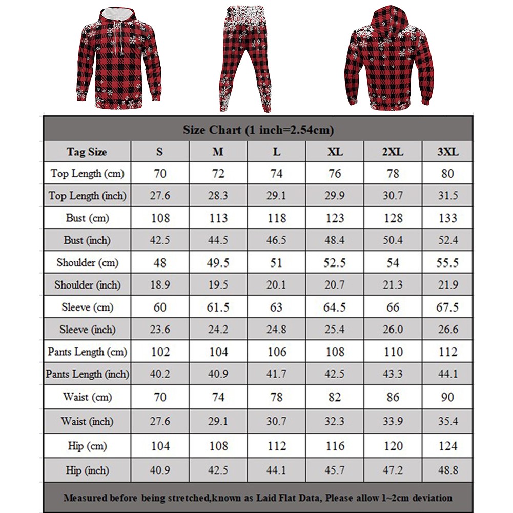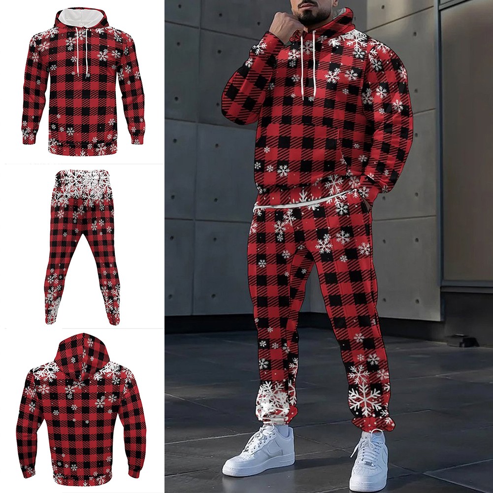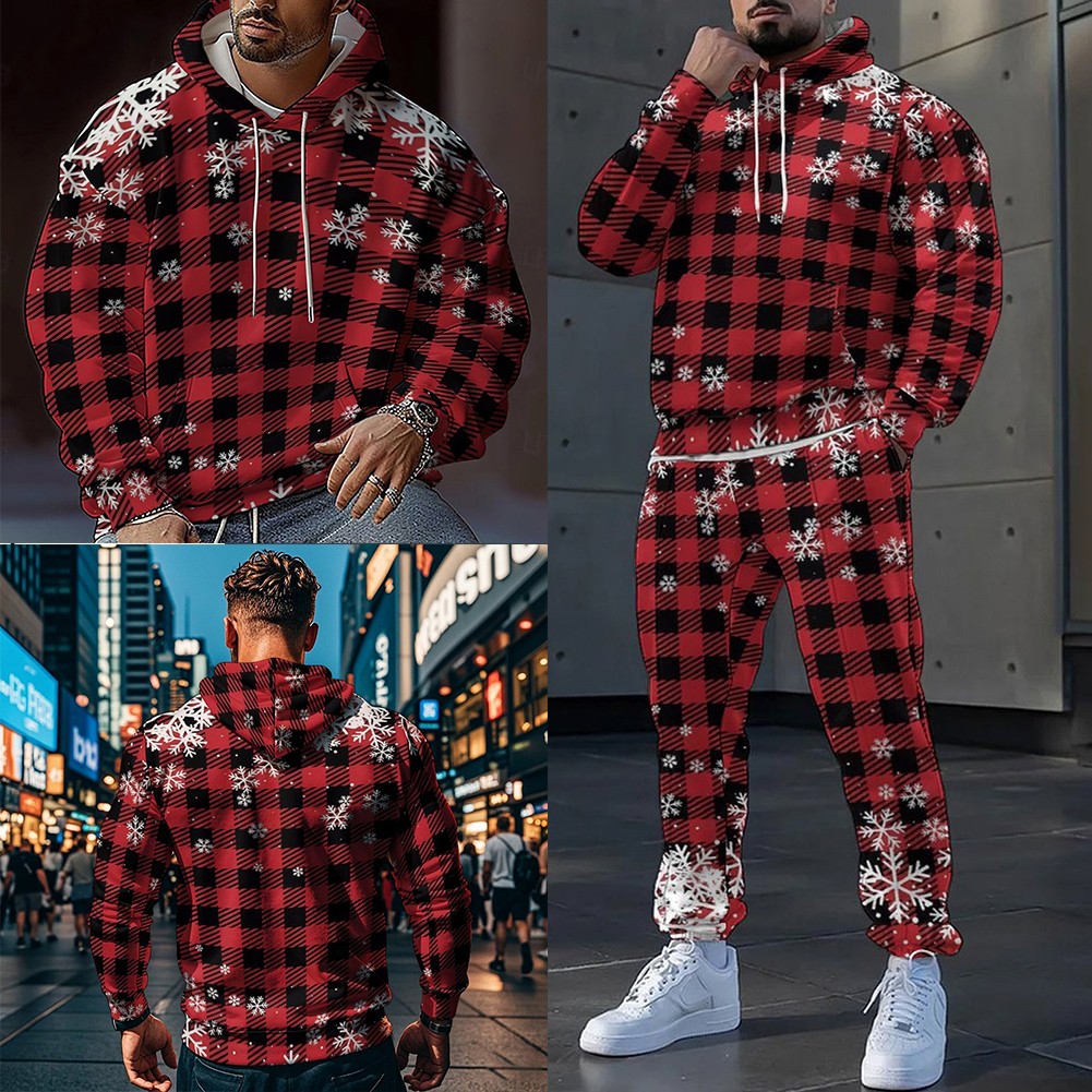 * Item Features:Men,Spring Autumn Christmas 3D Print Plaid Loose Hooded Sweatshirt and Pants 2PCS Suit,Fashion Streetwear