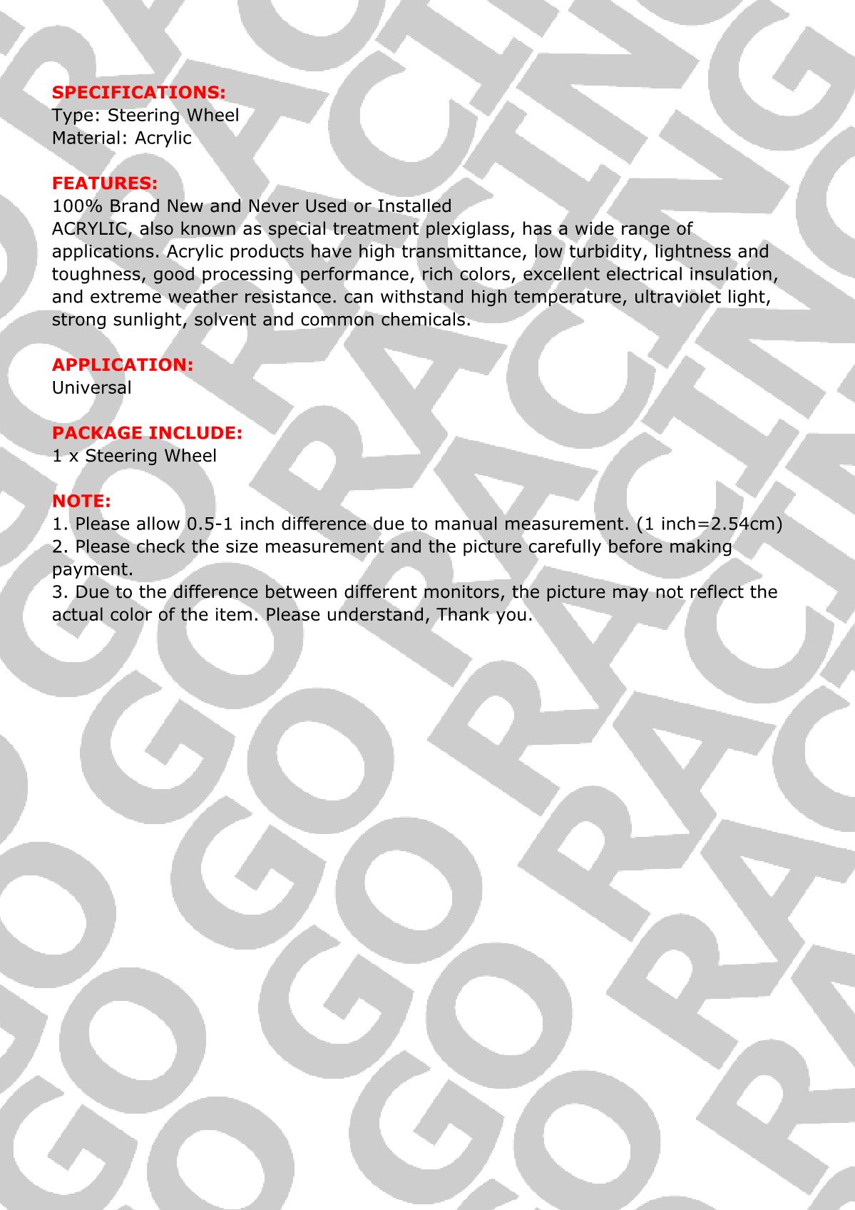 Crystal Steering Wheel Clear 6-Holes 350mm Bubble Burnt Spoke Deep Dish Racing
