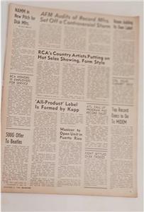 INTERIOR ARTICLES: $500,000 OFFER TO THE BEATLES TO RETURN TO US FOR CONCERT, DON HO TESTING OUT HIS HAWAIIAN ALONG, KHJ TV PULL SINGLES SCOOP BOSS RADIO LOS ANGELES, ELEKTRA FIRST COUNTRY ALBUM BEATLES COUNTRY.