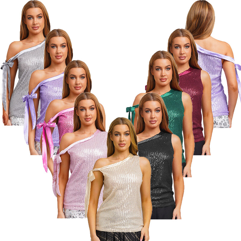The shiny sequins add a touch of glamour and sparkle, making it a trendy and eye-catching piece for any event, keeping up with the latest fashion trends.