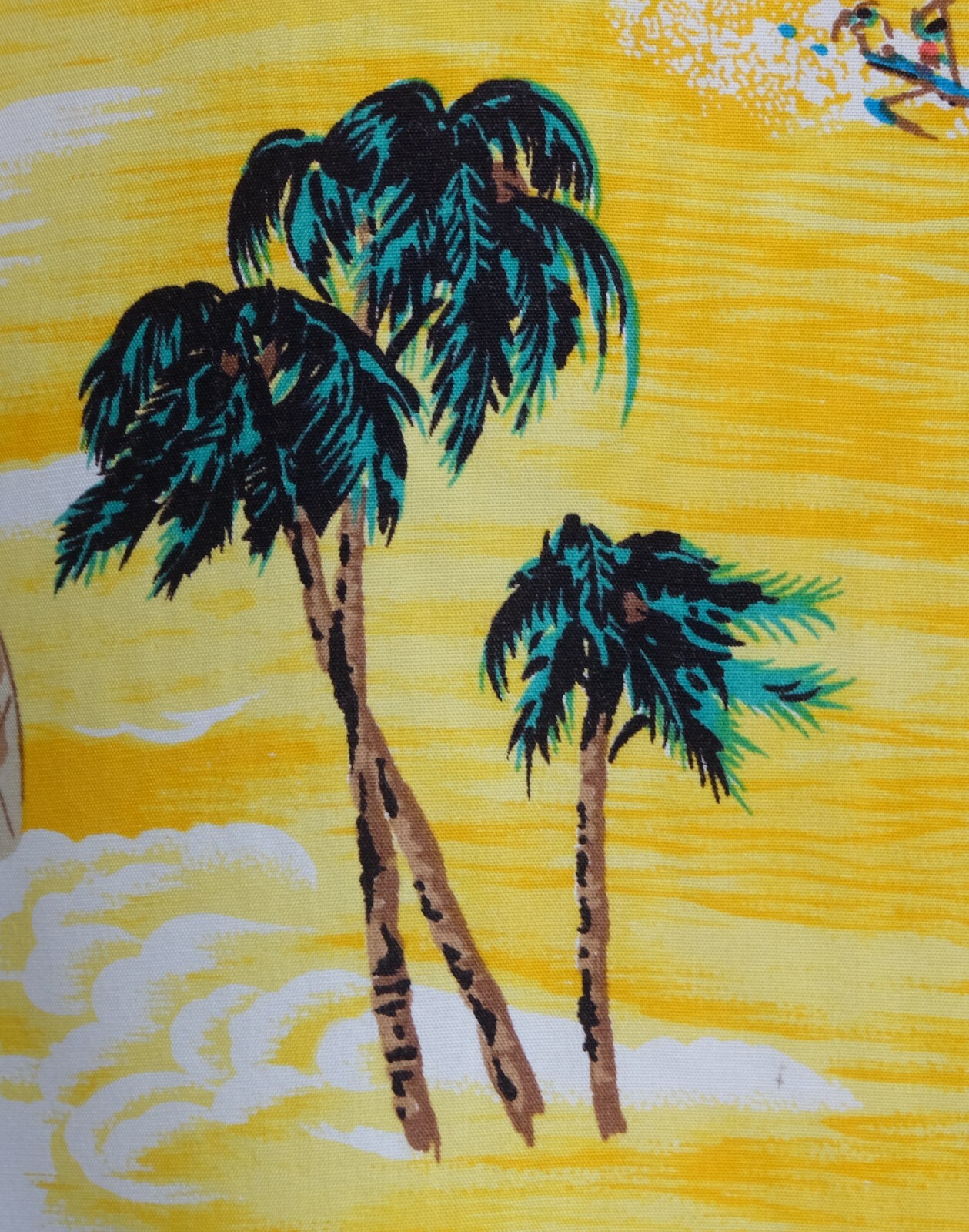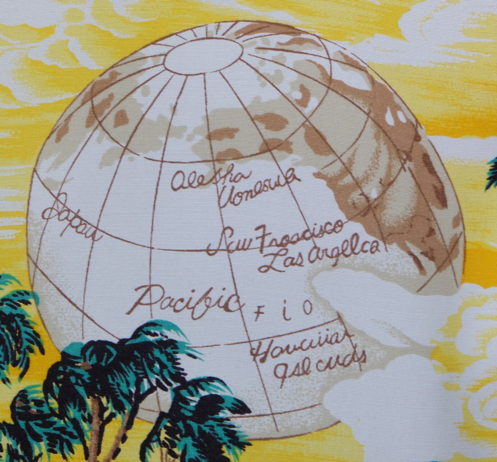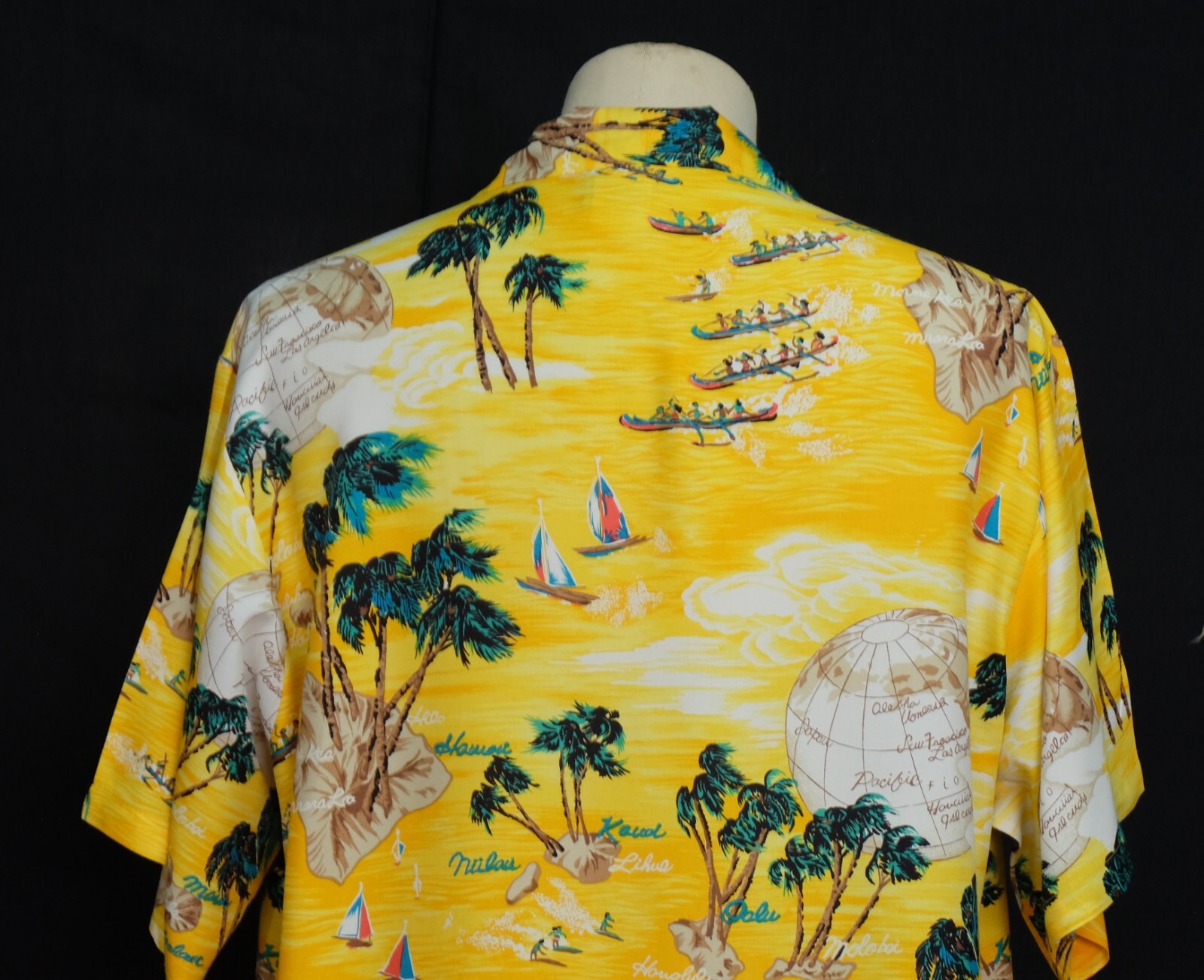 Awesome Vintage 80's Op Ocean Pacific yellow silky rayon men's Aloha Hawaiian shirt short sleeves size Large. Check out cool aloha shirt with Sailing, windsurfing, regatta, coconut, globe print patterns. The item is hawaii collar single pockets on left chest embroidered Op logo on end of left sleeve. 4 wood buttons closure on front, straight hem. Fabric is 100% silky rayon. The shirt is pre-owned still in excellent condition, no holes, tears, stains. It has been laundered clean and fresh ready to wear. Don't miss out cool and awesome vintage aloha hawaiian shirt.
