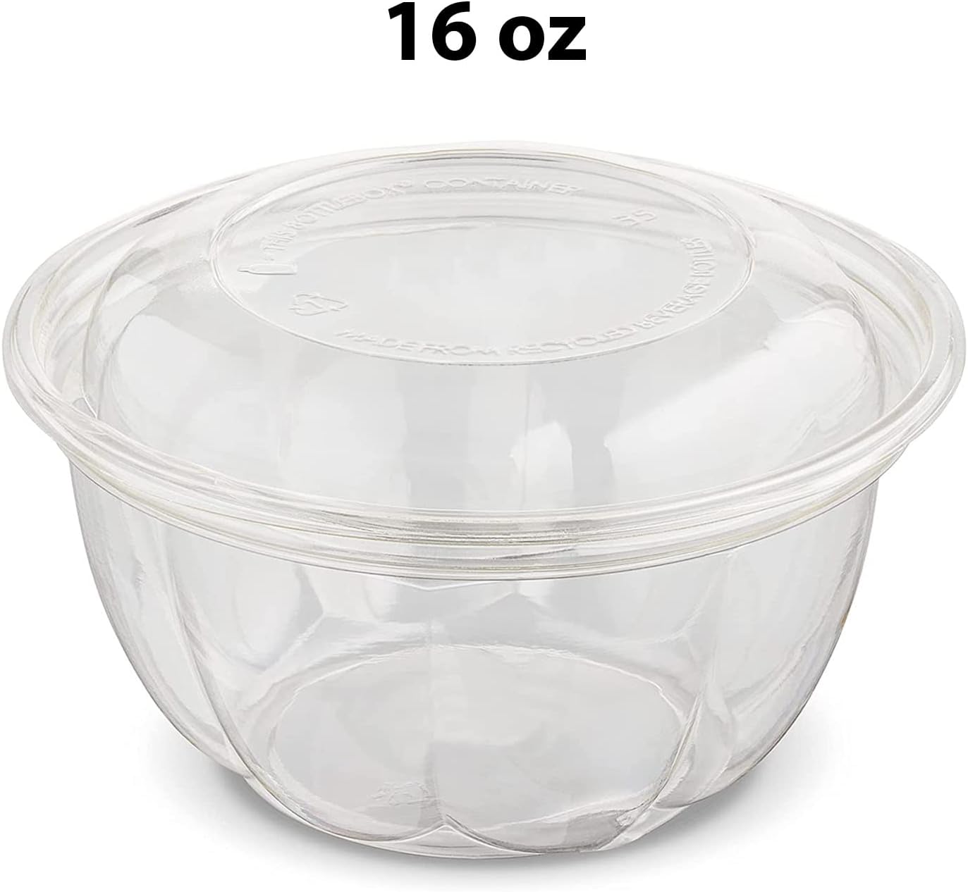 - Perfect salad bowl: These plastic salad bowls with lids disposable are the perfect way to pack a meal for when you are on-the-go. A plastic salad bowl with a size of 16 oz. Is a perfect portion of vegetables and greens, a poke bowl, or a fruit salad to take for lunch or dinner. This is the to go containers disposable bowls. The Disposable bowls with lid are freezer-safe, so you can store leftovers. and use the plastic to go containers as food container for your guests to bring home.