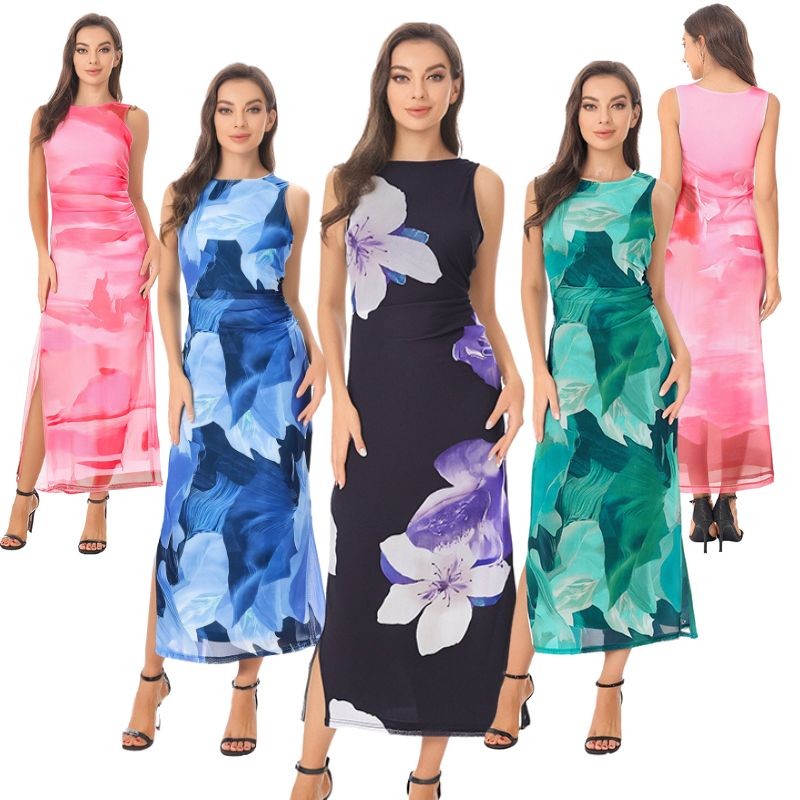 Crafted from a blend of polyester and spandex, this dress offers stretch and comfort, ensuring a flattering fit that moves with your body.