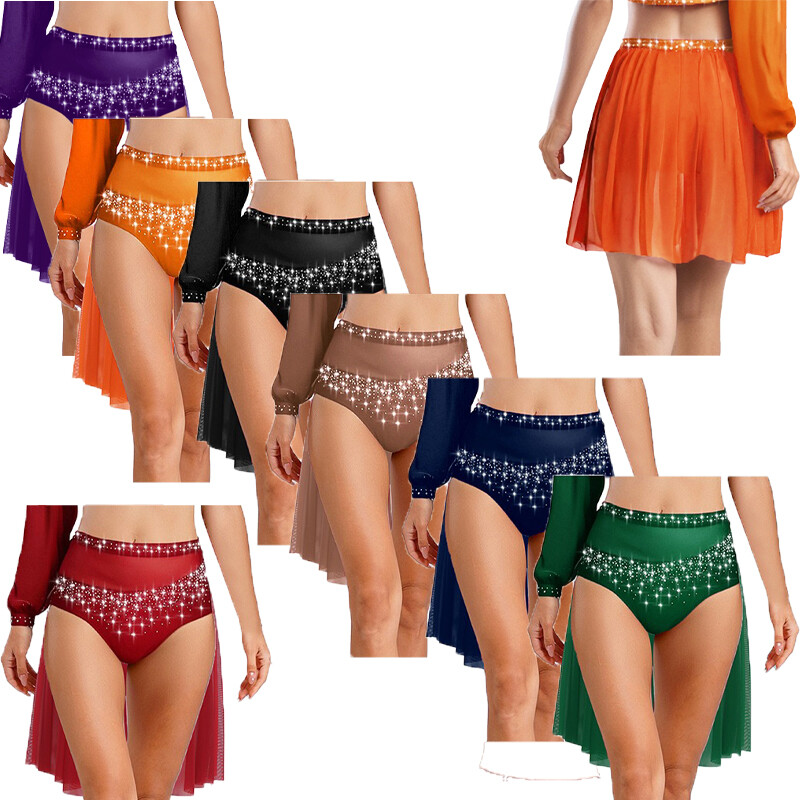 The flowy hem swing gently with the step to show the beauty of dance, the dress sparkles under the light to brighten up any performance.
