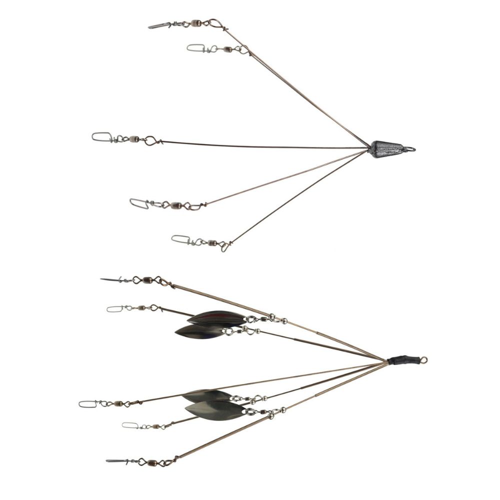 The 3 Brothers Baits Finesse (Crappie) A-Rig is built with a fine guage wire that gives the rig a ton of flex without much memory that provides the bite triggering pulse. Equiped with solid brass blades and quality components to last fish after fish. The weighted version has a 3/32 oz bullet shaped head perfect for getting to those deep brush piles where those slab crappie live. The 3BB Finesse Rig measures 4" long and is made with 5 wires and 4 blades. Choose from brass, nickel, or bladeless versions.