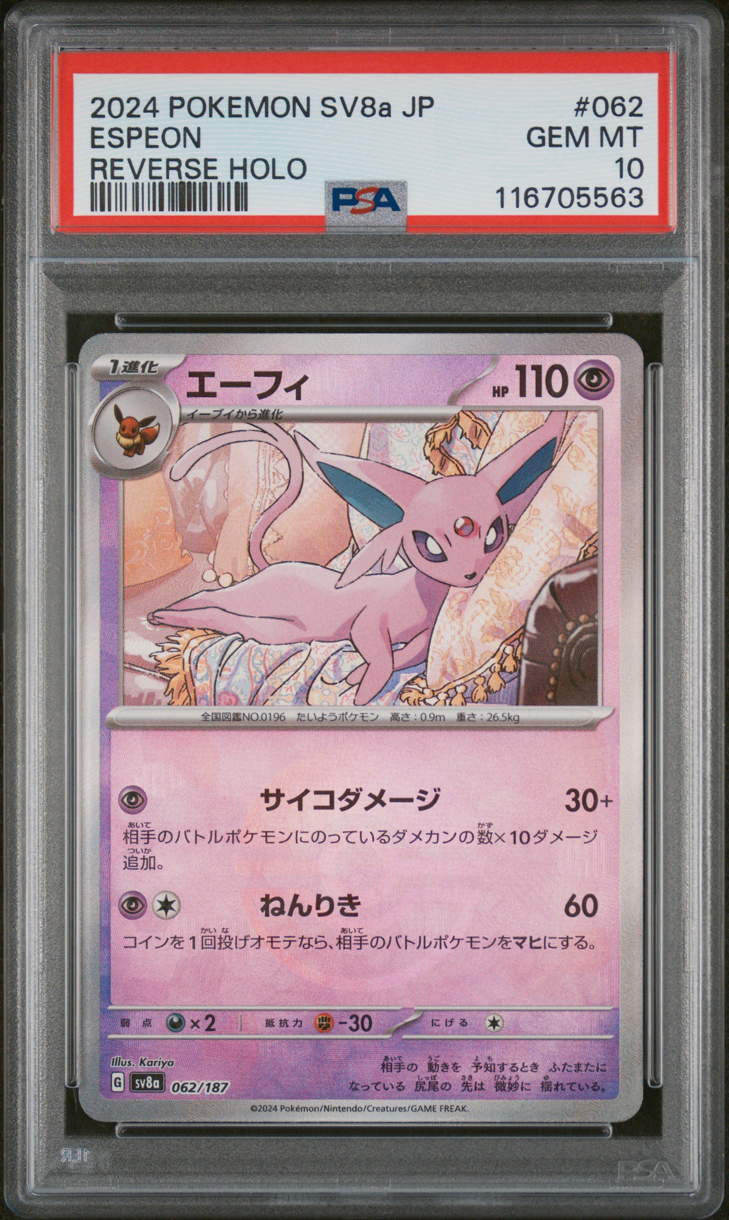 PSA 10 Espeon Reverse Holo 062/187 Terastal Festival GEM MINT Japanese Pokemon Card