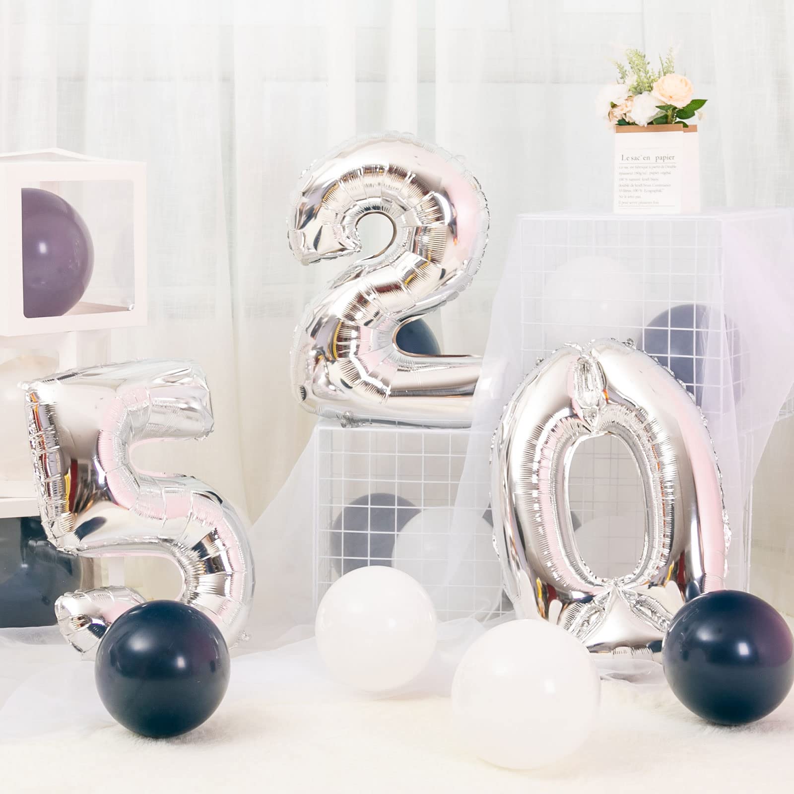 Silver Birthday Number Balloon 2Pcs Number Balloon 25 Happy Birthday Ball_