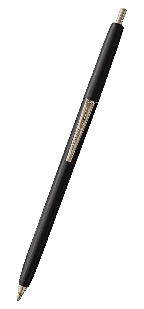 6" overall. Fisher PR4 black ink, fine point cartridge. Write upside down, at any angle, underwater, over grease, and in extreme temperatures. Color: Matte black. Hang packaged.