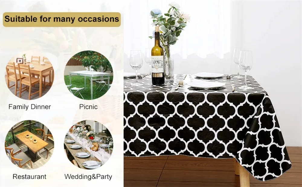 Homaxy vinyl tablecloth is more waterproof than the waterproof coating of farbic cloth. Don't worry about the splashing of drinks or soup, make your meals more enjoyable. It's perfect for families with children and pets.