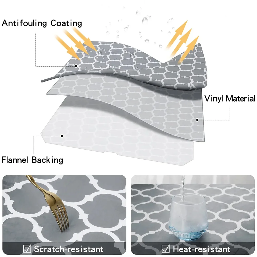 Homaxy durable tablecloth is made of thick vinyl and premium flannel backing that is thicker than others'. Our vinyl tablecloth can be reused many times and provides effective protection of your table from stains and spills, helps prevent dust and prevents the formation of dents, chips and scratches, and prolongs the service life of the table.