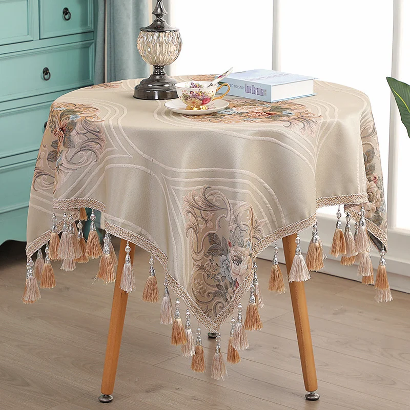 Exquisite Embroidered Fabric Fringe Lace European Tablecloth Balcony Small Round Table Kitchen Restaurant Placemat Tablecloth Christmas Wedding Furniture Decoration