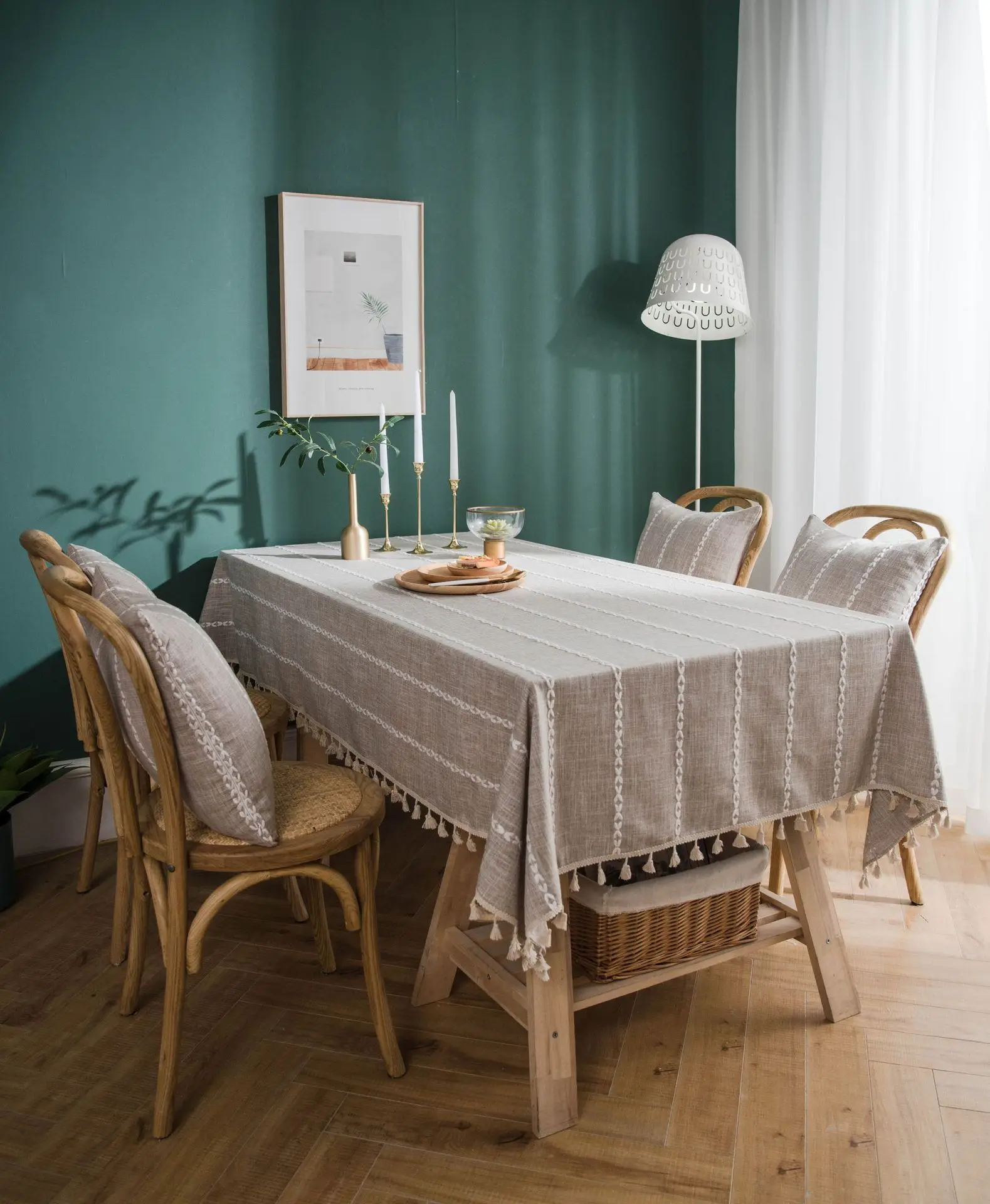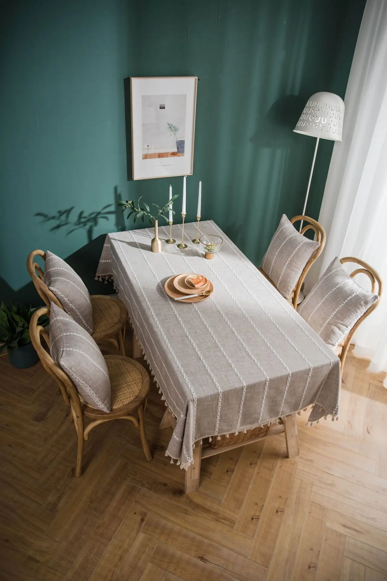 Washable Cotton Linen Stitching Tassel Design Tablecloth, Square Table Cover Great for Kitchen Dinning Tabletop Buffet Decoration