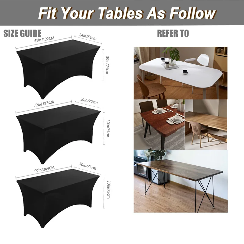 Easy to use: Easy to set up with four-way stretch spandex material and four pockets for legs are designed for keeping the tablecloth securely in place to fit your table better.