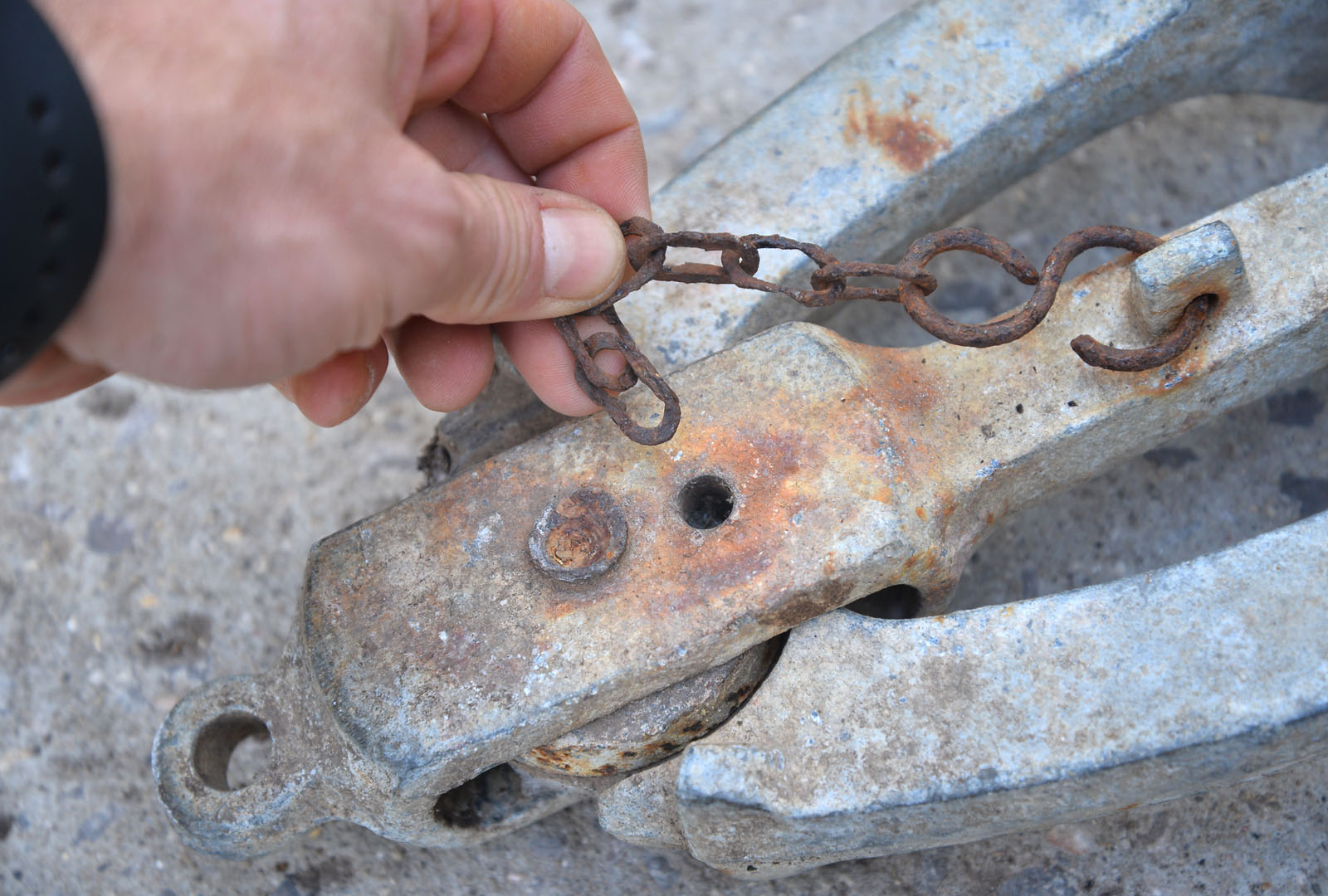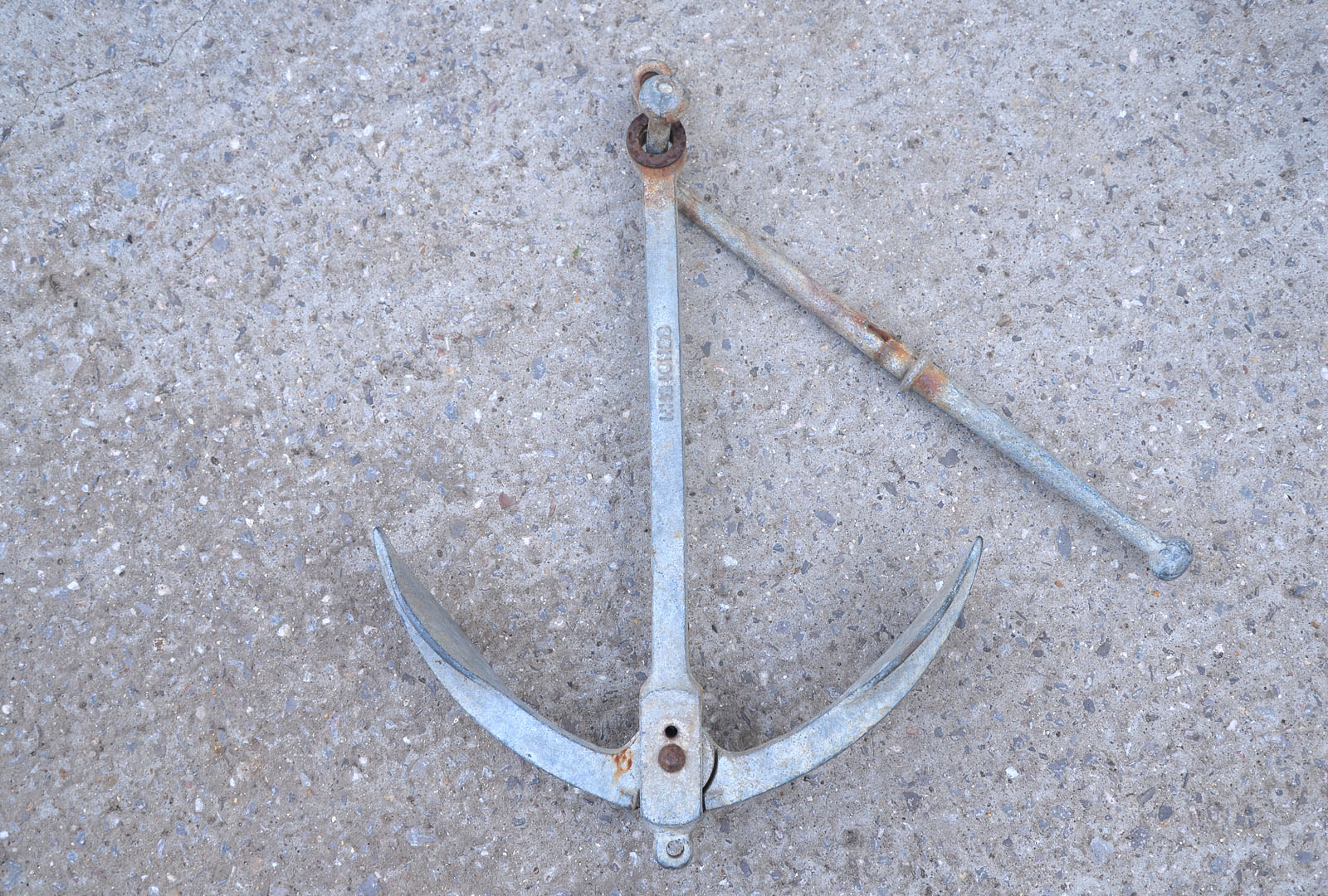 Welcome to my listing for this old folding fisherman anchor. PLEASE NOTE: fixing pin is missing as last picture shows.