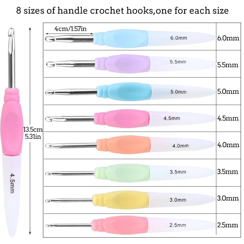 Quantity: 8 PCS Color:Random Color Size:2.5mm/3mm/3.5mm/4mm/4.5mm/5mm/5.5mm/6mm plastic handle and cover