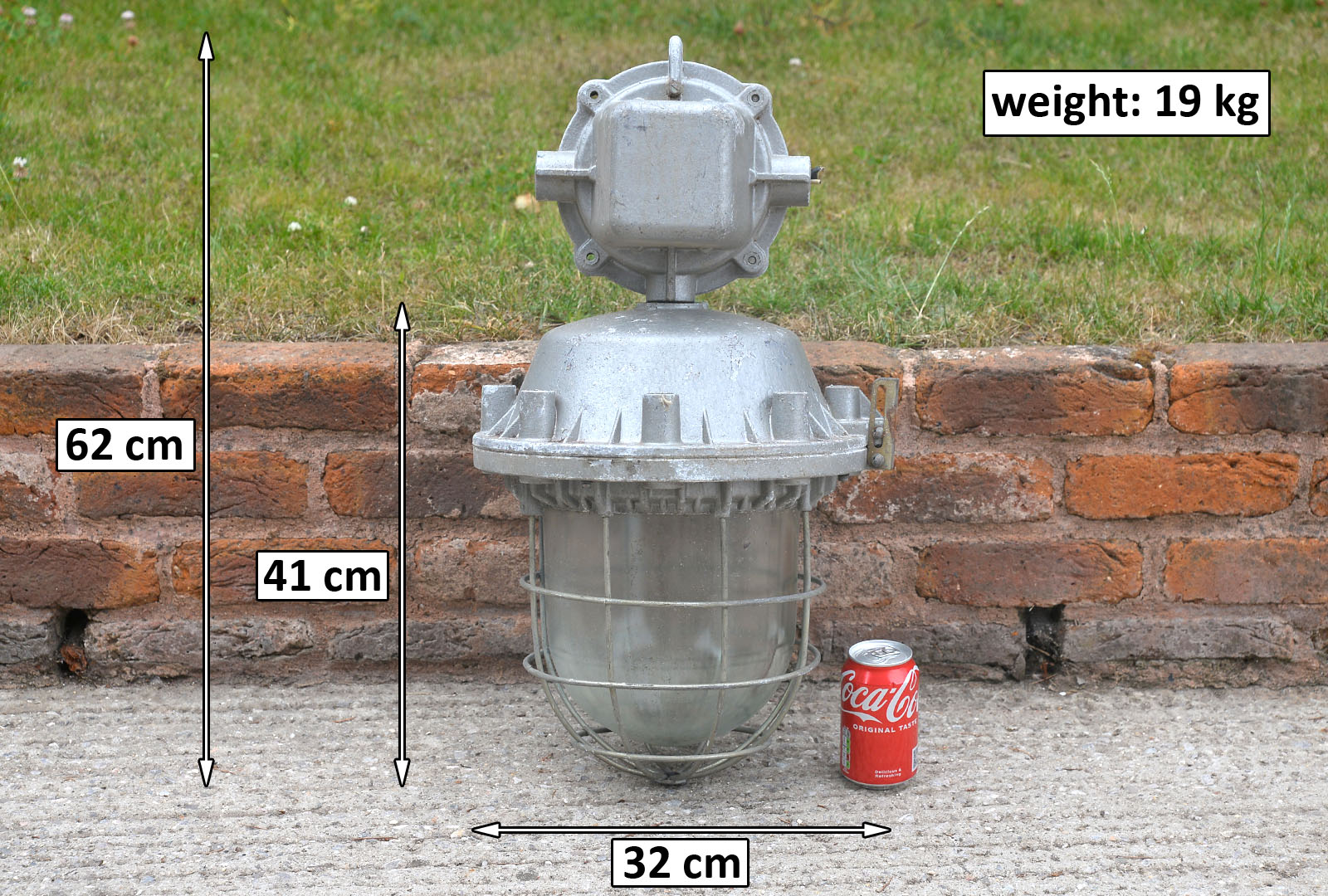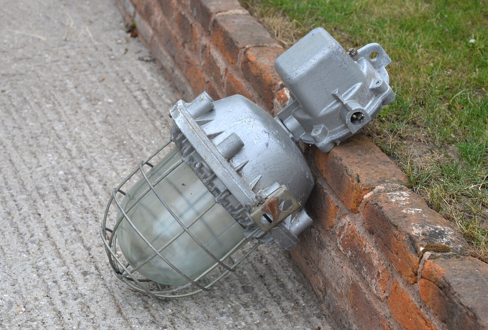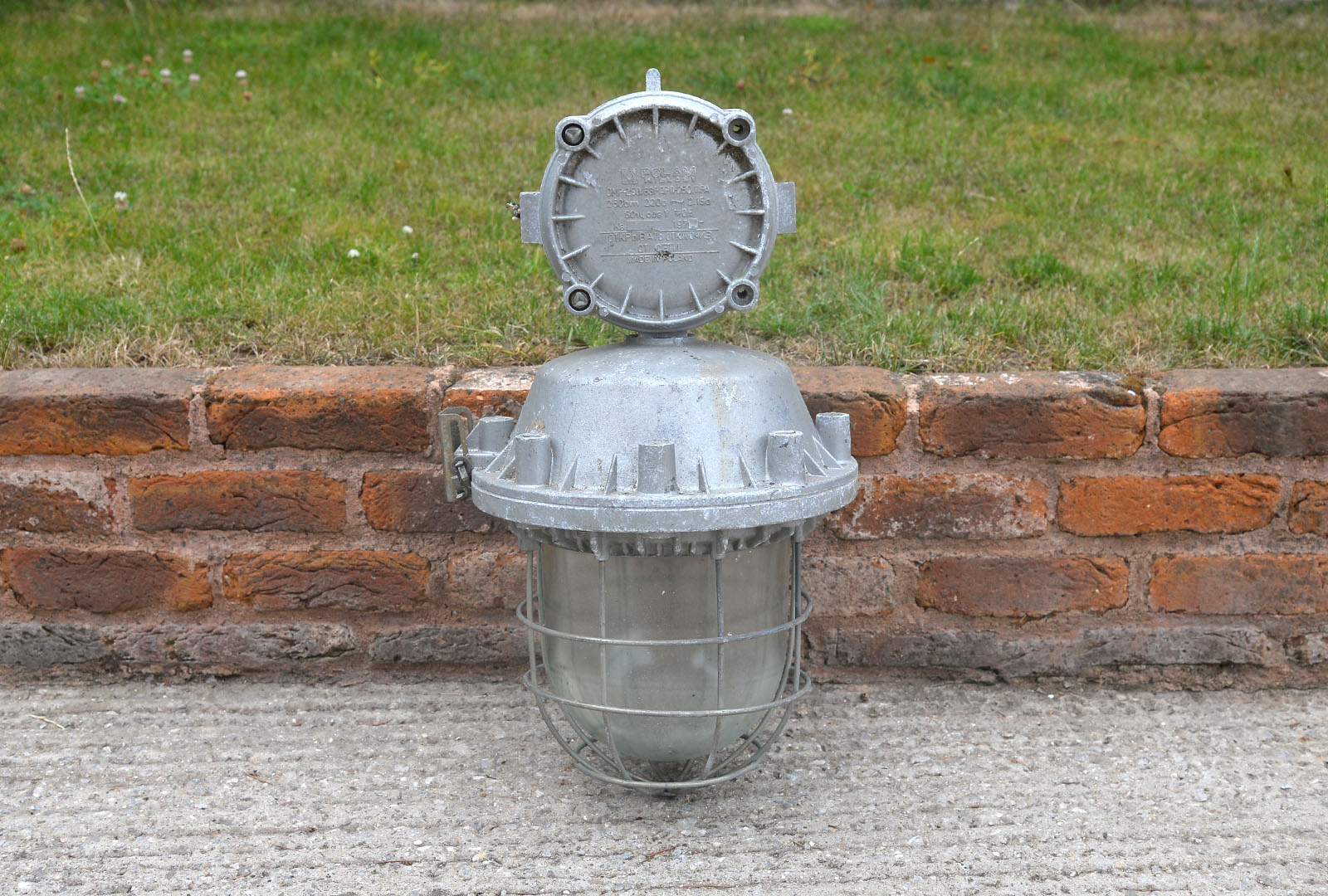 Welcome to my listingfor this large vintage industrial bulkhead light. This explosion-proof lamp is In good used vintage condition and is made of cast aluminium. It is untested, so a competent or professional person is recommended to install the lamp.