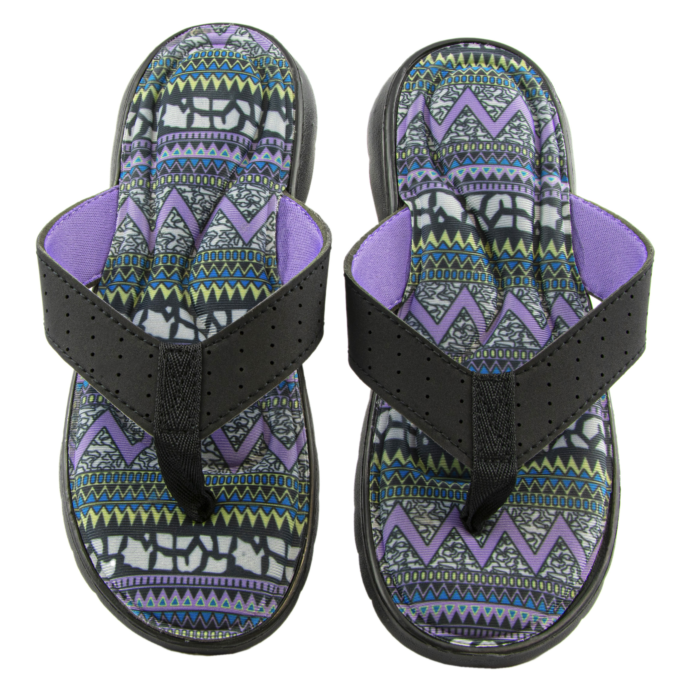 Canyon Sky Women's Memory Foam Flip Flop Sandals in Aztec Purple & Black, Size 10