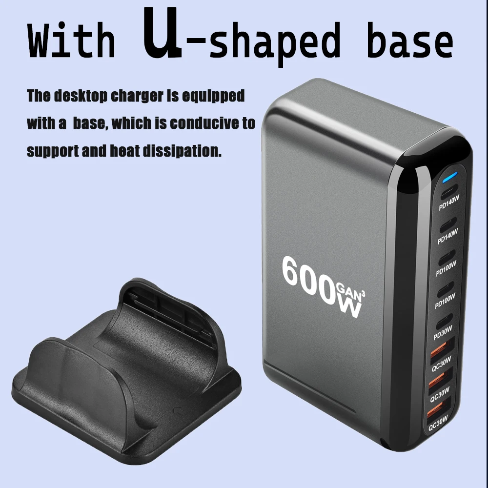 U-Shaped base & Back heat dissipation hole design - The desktop charger is equipped with U-Shaped base,Equipped with heat dissipation holes on the back, which is more helpful for support and heat dissipation.