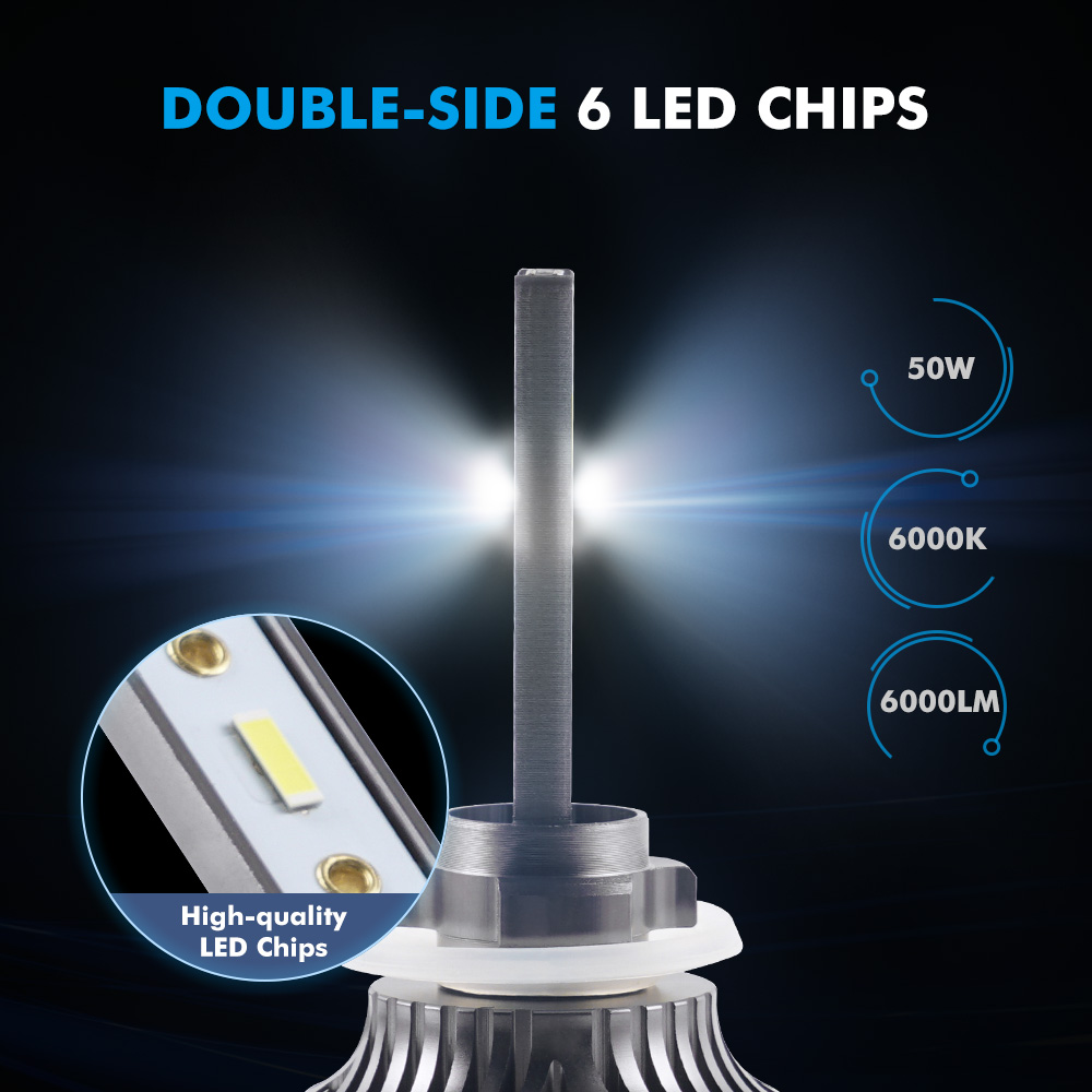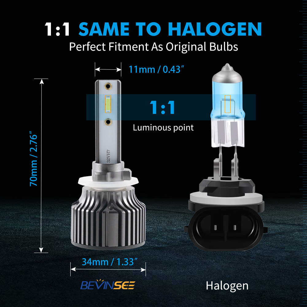 --Copper plate chip,increase 100% heat dissipation,protect LED chips,extend lifespan. --9000 RPM fan to accelerate heat dissipation,increase 80% heat dissipation. --Better cooling system: Fan cooling + lamp body cooling system. --Adopted opening high speed cooling fan design, less noise and better heat dissipation. --2 sides emitting ensure for the better beam pattern and brightness. --Customized latest CSP chips ,light efficiency increased by 25% comparing with ordinary chips, --30% brigther than other LED bulbs,200% brighter than halogens. --Our LED light come with exactitude light beam angle, no dazzling, no influence for the coming driver at left in front. --Improve brightness lighting.Provide reasonable distance & wide of view. Product Detail Condition: New Brand: BEVINSEE Lumen: 6000LM /Pair Power: 50W /Pair LED Chips: CSP-1860 Color Temperature: 6000K Power Factor (PF): 0.90 System Efficacy (lm/w): 150LM/w Color Rendering Index (CRI): 80 Total Harmonic Distortion (THD):12% Beam Angle: 360° Note --Application to above 95% vehicle. --For some vehicle,please measuring the gap between the headlight assembly back cover and other accessories according to our product size,if did not know how to install, professional installation is recommended!!! --For some vehicle,especially H7/H1 Type,You may need extra Bulb Holder/Retainer to help to upgrade your halogen Bulb to LED Bulb. --Please choose right product models before place your order,if you did not know what type models would fit to your car,please take some photos of your original headlight bulbs to us,or tell us of vehicle's "year,make,mold" ,we will give a help. --This item does not contain Can-bus & DRL function,please note!!! FAQ Q1: Will the bulbs suitable for my vehicle? 1. If you are not sure about your bulb model, please check the ebay fitment as the instruction above. 2. Check the owner's manual, or better yet, physically inspecting the bulb in the vehicle beforehand. 3. Contact us with your vehicle make/model/year via eBay message to ensure you get everything you need for your kit! Q2: What if I encounter a dashboard error message or flickering? A: All the Bevinsee LED headlight bulbs are designed with plug and play, and CANBUS ready. While there are a few sensitive vehicles might occur an error or flickers. The warning Canceller solves this problem. Q3: Neither side lighting up? Both sides flicker, flash, or work inconsistantly. Pls kindly Check the headlight fuses, and then check the ballast plugs to insure correct installation. If this doesn't work, your car may need a relay or resistor. Q4: How to get the best light output? A: When the LED CHIPS are facing left and right(3-9 o'clock) direction and the lamp body stays vertical at 12-6 o'clock direction, you will get the best light output. Please check out the installation video on the product detail page. Q5: What should I do if there is a quality problem? A: Please send ebay message to us, we will solve any problems for you as soon as possible. Q6: The bulbs doesn't fit my vehicle. 1. The bulbs size maybe wrong, pls double check before order. 2. For some socket, such as H1, H3, H7, special bulb holder may be required. Pls send us the photo of your bulbs, bulb socket, and we will check for you. Q7: Warrning about polarity A: Please kindly check the polarity when connecting the plug. If the LED bulb does not light up or work properly after installing, please flip the plug around to reconnect. DISCLAIMER