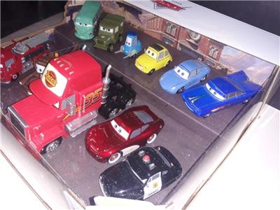 Here is a cool set of 11 cars (metal) from the Ultimate DieCast Radiator Springs Deluxe Set. These are the larger format diecast metal cars and not the smaller "hotwheels" size. The cars are considered 1/43 scale. The details on these are great! Very High Quality! Mack is an exclusive truck.